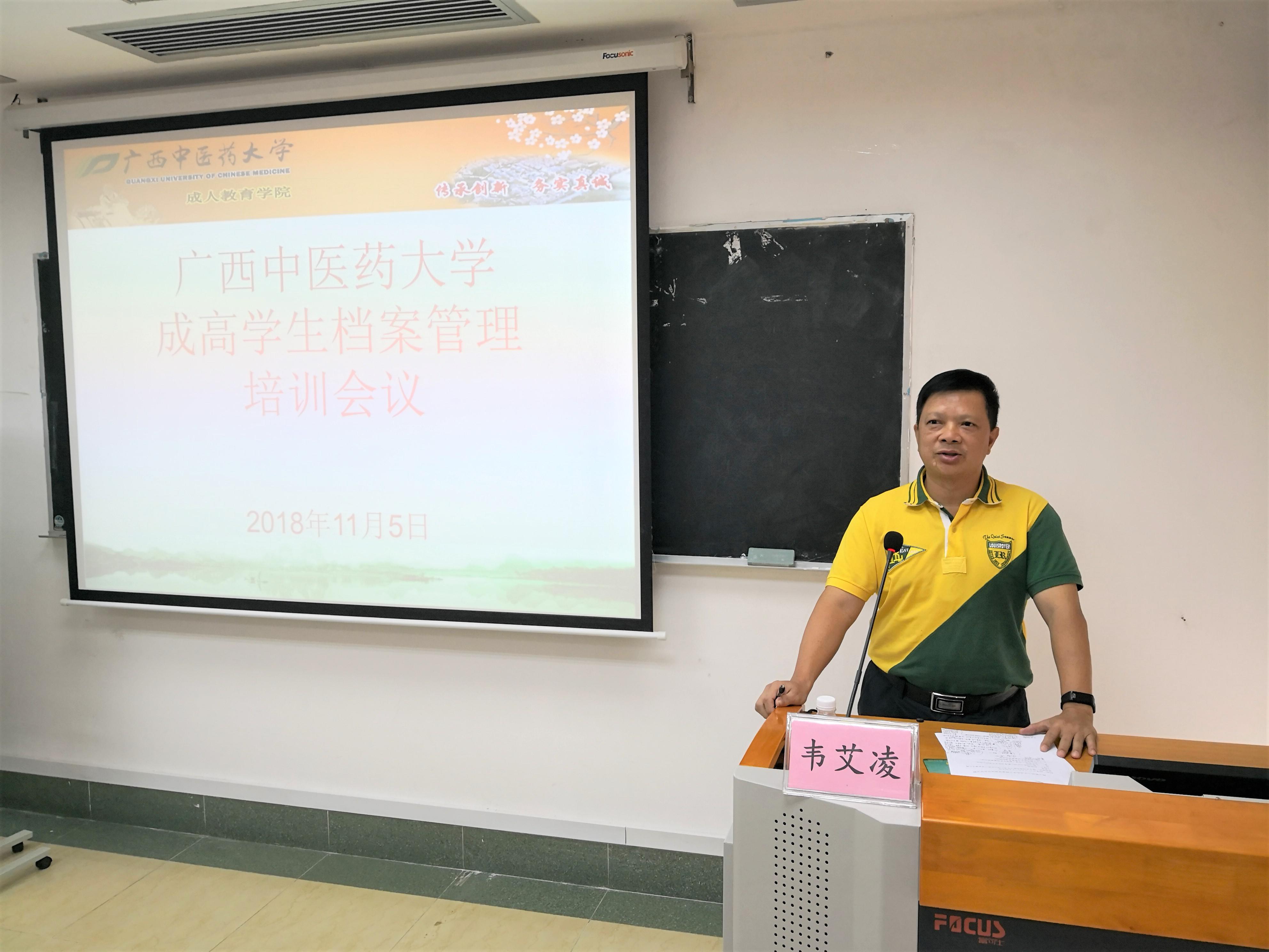 11月5日,为加强并规范成人教育学生档案管理工作,更好适应新形势下档案管理的需要,点点体育在明秀校区会展中心召开2018年taptap点点体育成人教育学院学生档案管理培训会议。直属党委书记、成人教育学院韦艾凌院长、黄瑞诚副院长、成教院各科室相关人员及各教学点学生档案管理员共30余人参加了会议,会议由黄瑞诚主持。