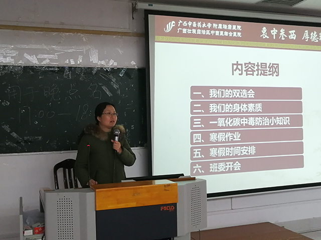 同时,瑞康临床医学院在寒假和春节前进行考试巡考和安全教育及宿舍检查,旨在落实学生管理工作,力争使学生工作更全面、深入、到位。1月13至20日,瑞康临床医学院学生科对各专业班级进行了寒假安全教育主题班会,强调出行安全,人身财产安全和食品安全等问题,进一步加强了学生的安全意识。1月10至16日,瑞康临床医学院学生科组织辅导员老师对校内各宿舍以及南宁市各实习医院宿舍进行走访及安全排查,辅导员老师与同学们充分讨论当前实习、就业中遇到的问题,并对同学们用电安全、宿舍卫生等作出要求。