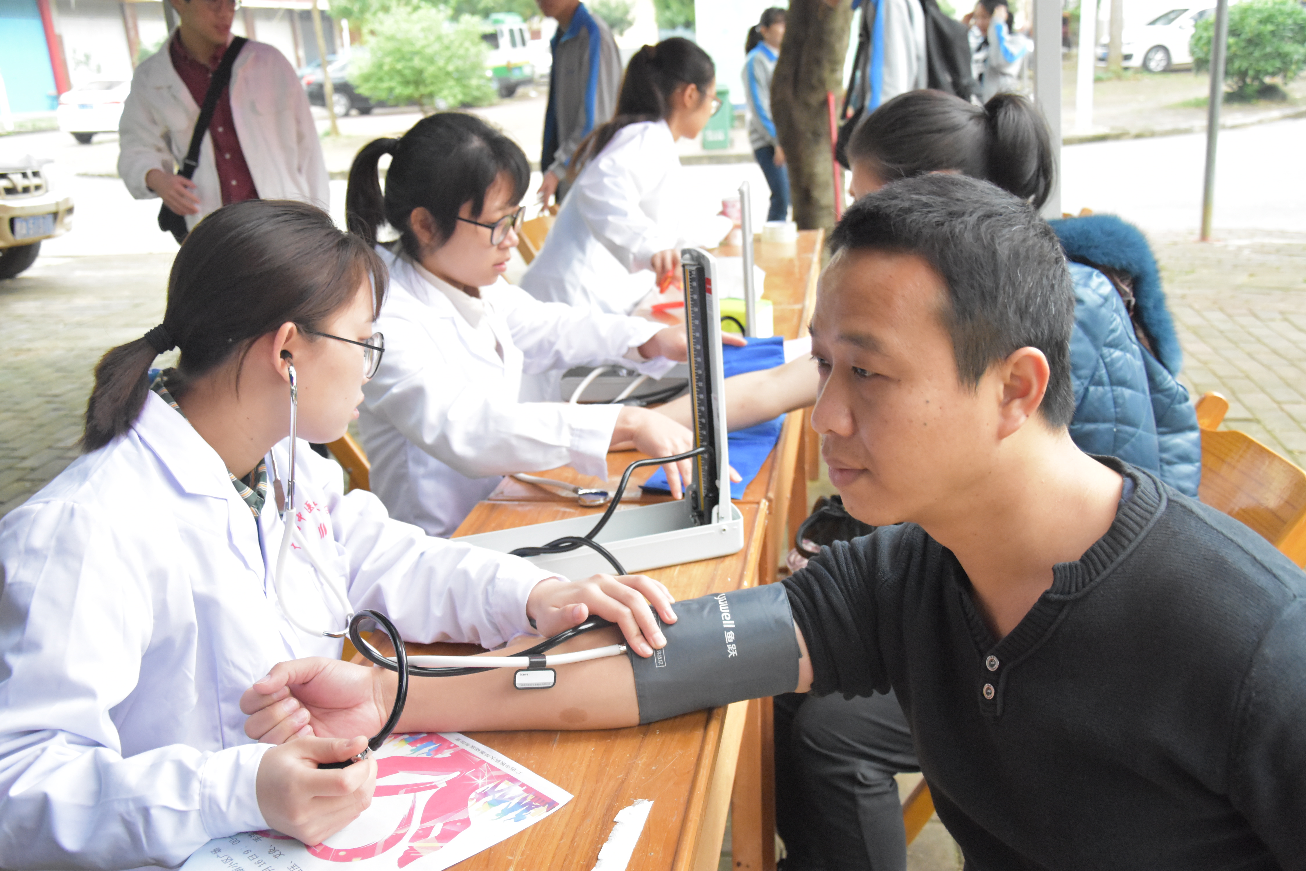 活动开始前,基础医学院团委、学生会的志愿者通过悬挂横幅、发放传单和口头讲解等方式向往来的社区居民宣传此次活动。活动中,志愿者们各司其职,积极配合,为居民测量血压,进行按摩、针灸以及艾灸治疗,并讲解了日常疾病的预防、肩颈腰腿等养生保健知识。义诊人员尽自己所能,为到达活动现场的社区居民提供良好的帮助与服务,赢得了小区居民一致认可和好评。