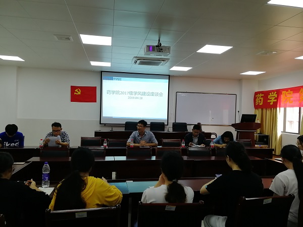 4月18日下午,药学院召开大学生“听心声、建学风、促进步”为主题的学风建设座谈会。药学院2017级36名学生代表参加了此次座谈会,药学院学办主任凌勇威老师、药学院团委书记黄鑫老师、2016级辅导员孙慧玲老师和吴玉峰老师出席座谈会并与学生现场交流, 2017级辅导员刘佳老师主持座谈会。