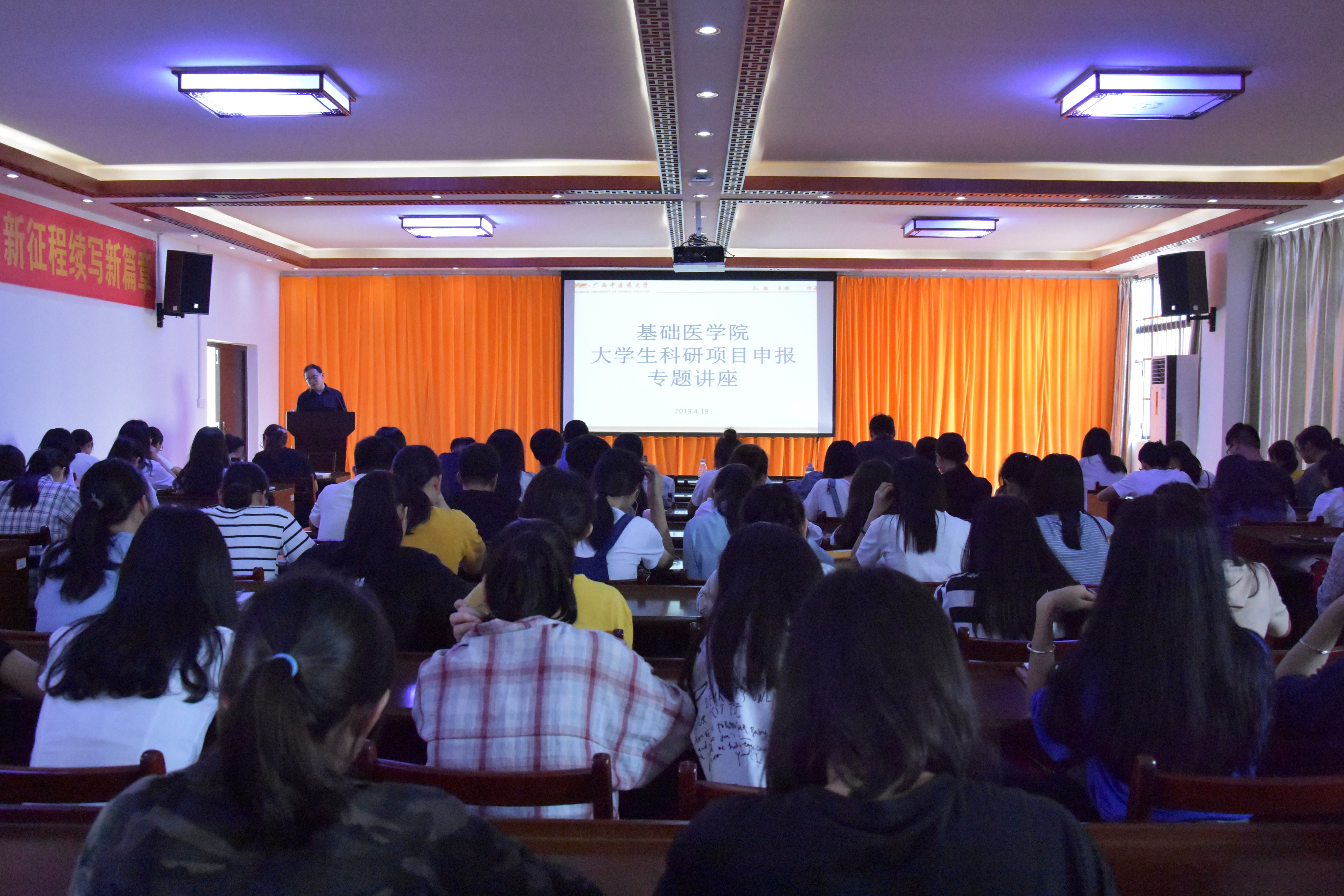 为推动基础医学院创新人才培养进程,培养高素质创新人才,提高我院大学生参加科研项目积极性,让更多大学生理解大学身做科研项目重要性,基础医学院于4月19日下午在基础医学院会议室举行《大学生如何做科研》主题讲座。本次讲座由基础医学院伍冠一博士主讲,基础医学院副院长邓鑫、基础医学院科研办主任张齐以及基础医学院150多名同学参加本次讲座活动。