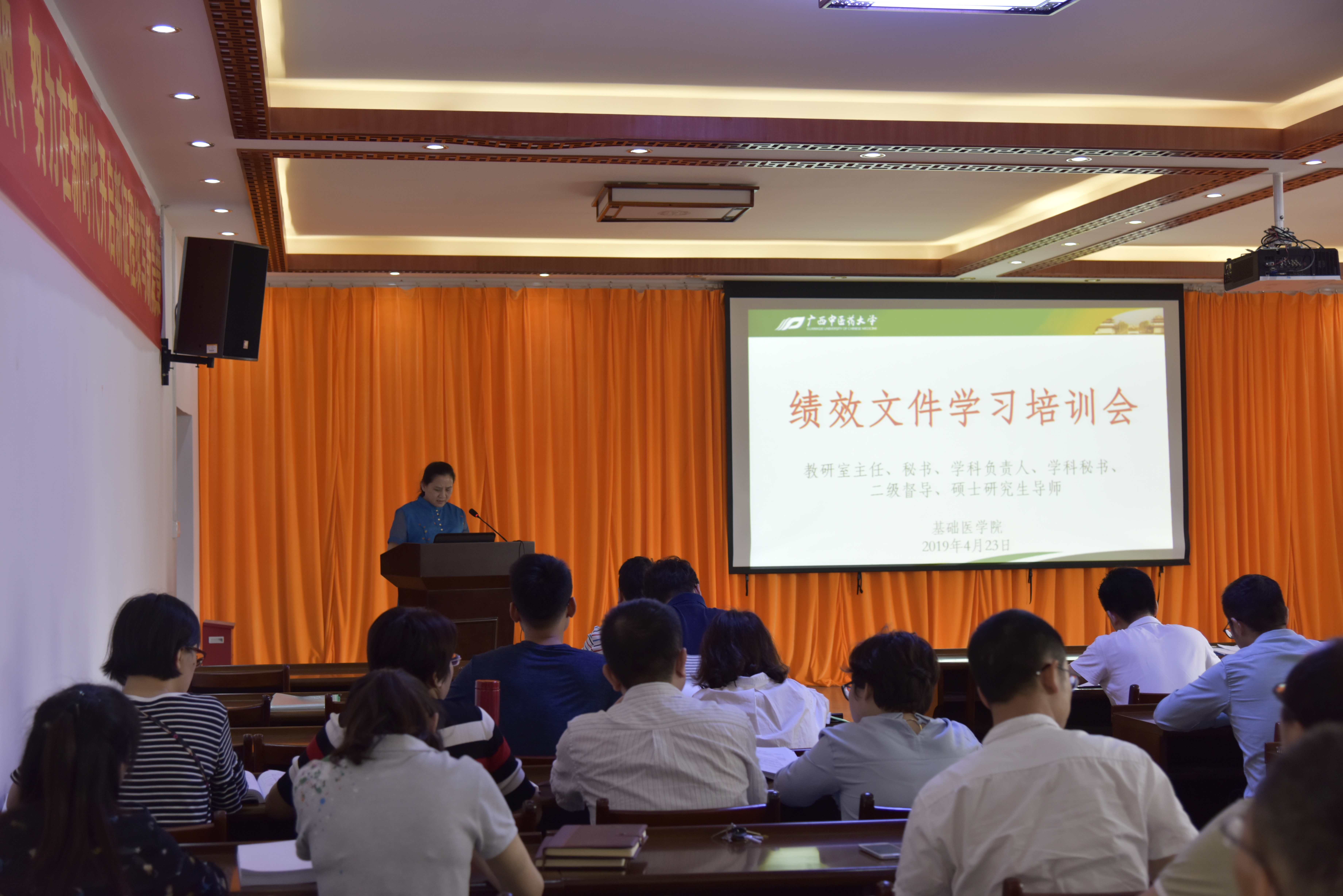 为使基础医学院各部门理解绩效考核要求,落实考核细节,基础医学院于4月23日下午在达道楼A305会议室召开基础医学院绩效考核文件学习培训会。参加会议的人员有学院领导班子成员,行政、教学、科研、学工等办公室主任,教研室主任及秘书,学科负责人及秘书,二级督导,硕士研究生导师等。会议由学院党委书记龚名师主持。
