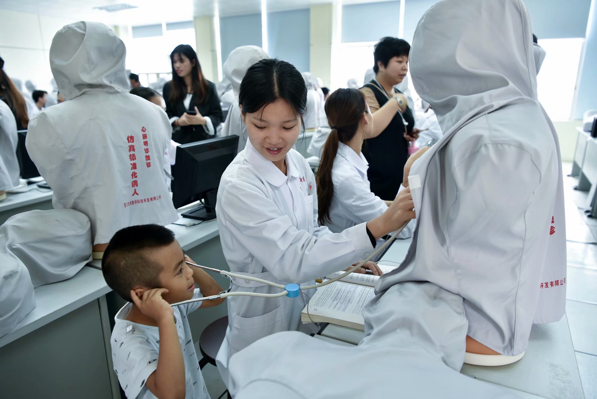 上午,参观者陆续到校,在院(校)师生的热情接待和引导下,有序地参观了临床护理实训中心、中医实训中心等教学科研实训场所。参观过程中,各个学生讲解员详细地向来访者介绍了实训室的基本情况,进行了成果演示,并与参观者进行了互动。主会场设置在礼堂,重点布置了中医药技能体验区、护理技能体验区、德育成果展区等区域。通过实训室的参观,推拿、拔火罐、急救护理、口腔护理、社团展示等体验与展示,让小朋友们更好的理解生命的意义、中学生更好的感受医护精神、附近居民更好的感受到职业教育的成果。