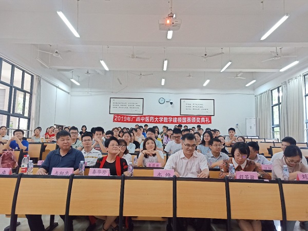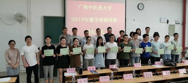 近日,为了表彰全国大学生数学建模竞赛的获奖选手,药学院在仙葫校区2-105教室举办了2019年taptap点点体育数学建模竞赛颁奖典礼。学校教务处副处长韦维,药学院副院长秦华珍及数学物理教学团队全体老师、辅导员等80余名师生参与活动。