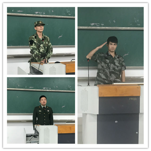 张春结合国内外形式强调了征兵工作的重要性,并鼓励同学们到祖国需要的地方去,践行爱国主义,在八一军旗飘扬的地方实现自己的人生理想。龙春莉结合自己填报大学志愿时的从军梦,指出女同学要有巾帼不让须眉的精神并鼓励全体同学们不负青春,在实践中践行保家卫国的爱国主义。王怿清向同学们详细介绍了征兵政策以及待遇,并鼓励同学们投身军旅,在历练中提升。通过退伍复学同学刘君坤、鄢大城、周日强、韦道扬的军旅生涯分享,同学们感受到了军营生活的充实,进一步激发了同学投身军旅的热情。