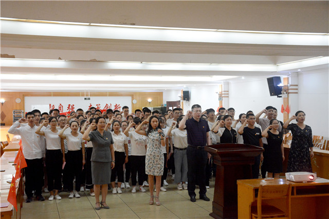 最后,全体人员在陈日兰的带领下,重温入党誓词,不忘党员初心,立志为国家和民族鞠躬尽瘁。