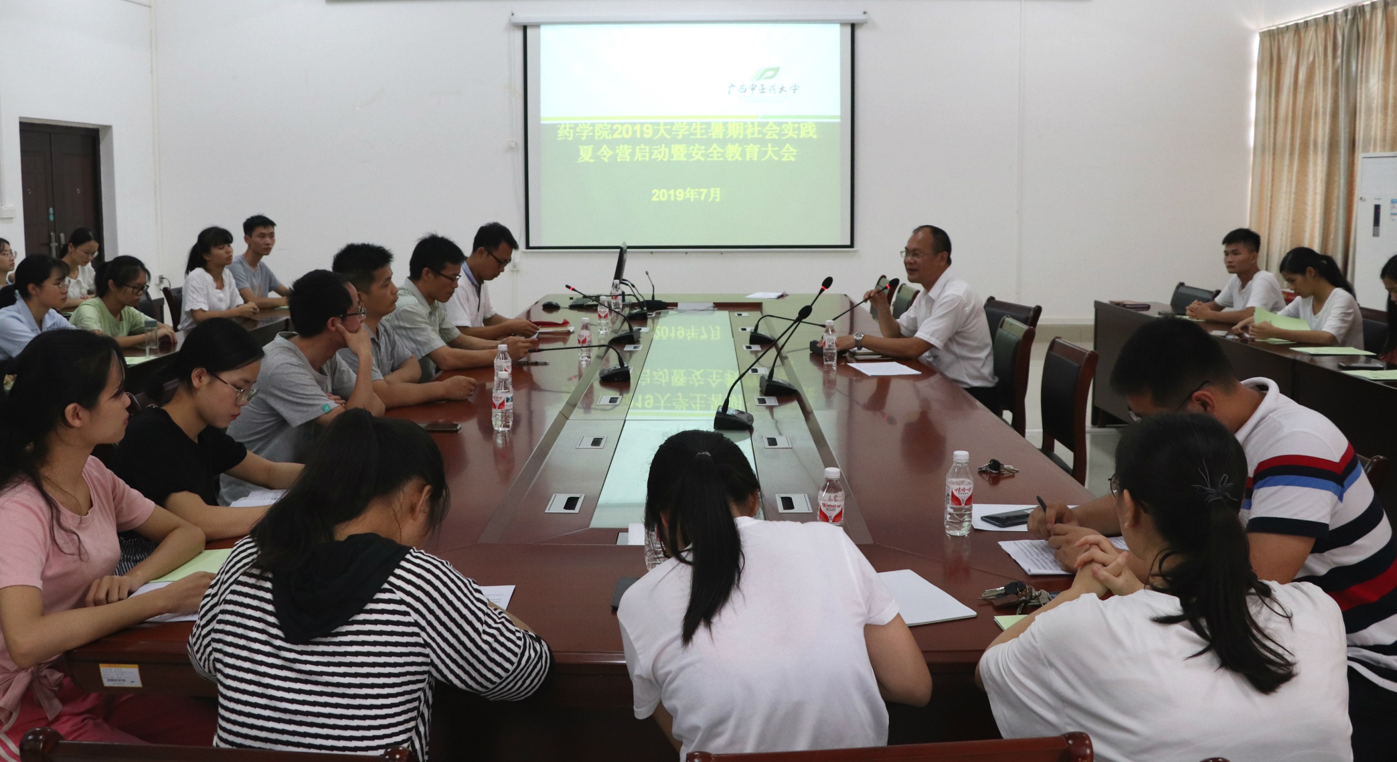 会上,药学院领导强调了学生夏令营期间安全管理工作的重要性,并从生产安全、消防安全、饮食安全、交通安全、人身安全等方面为同学们讲解安全教育知识。并指出,同学们要严格遵守营地驻地公司的管理规定,服从营地工作人员的管理安排,自觉遵守营地宿舍作息制度,做到不晚归、不外宿。希望各团队遵守学院社会实践关于安全教育的要求,严格汇报制度,采取一天一报和起止报告的制度将活动情况通报值班老师,并对今年的暑期社会实践提出了四点要求:一是要在社会实践中了解社会,坚定理想信念;二是要在实践中结合实际,提高专业技能水平;三是要在实践中虚心学习,增长才干,虚心向群众请教学习,勤思多问,增强服务群众的能力;四是要在实践中树立安全意识,平安快乐。带队教师和同学们一定要牢牢树立“安全第一”的思想,始终把安全工作放在首位,遵守纪律,确保社会实践安全顺利开展。