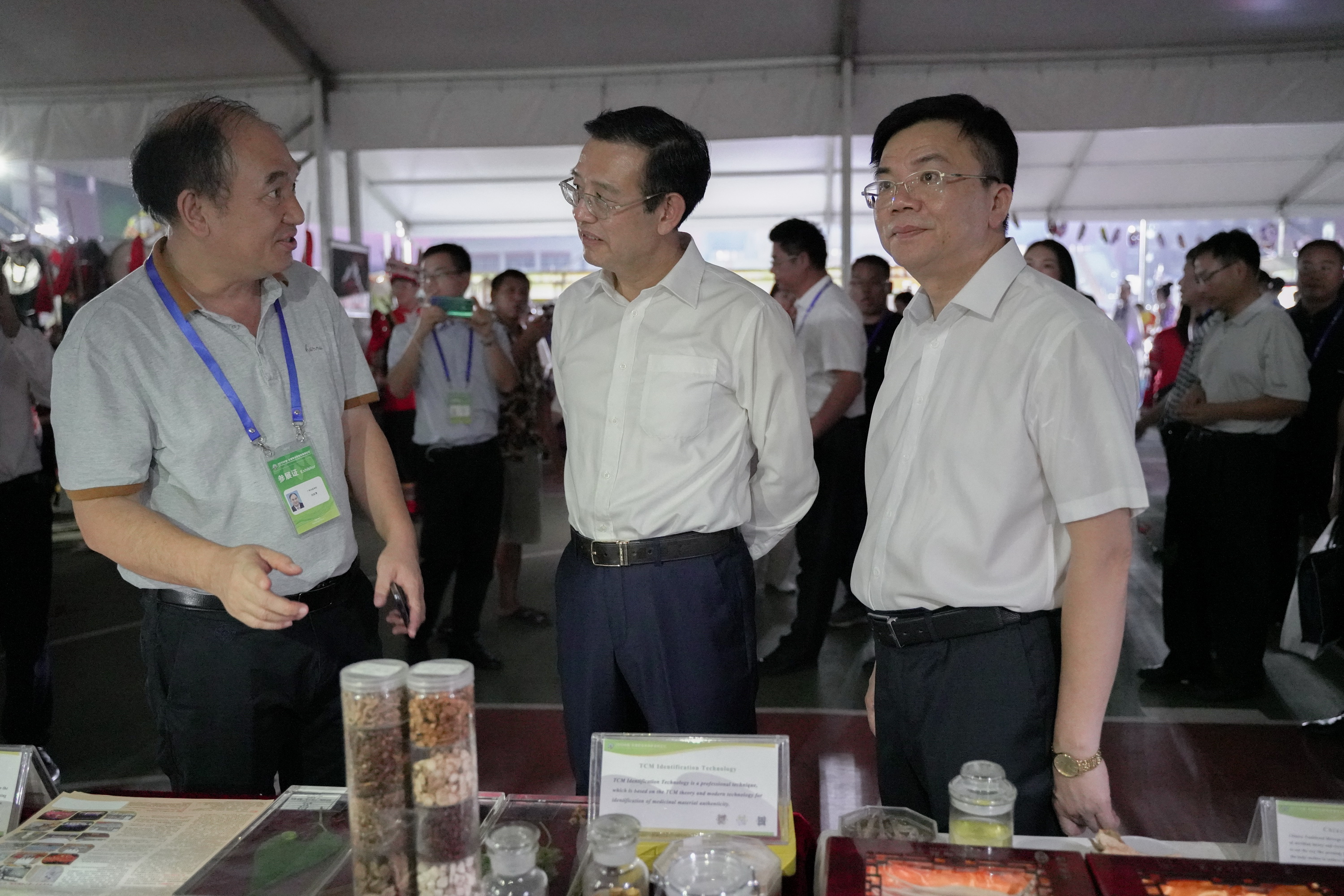 9月20日下午,自治区教育厅厅长唐咸仅、副厅长黄雄彪等莅临广西中医学校2019中国——东盟职业教育学生技术技能展,学生创新创业展区。中医学校校长刘竑清简明扼要向唐咸仅一行介绍中医药特色传统技术疗法和中医药膳。