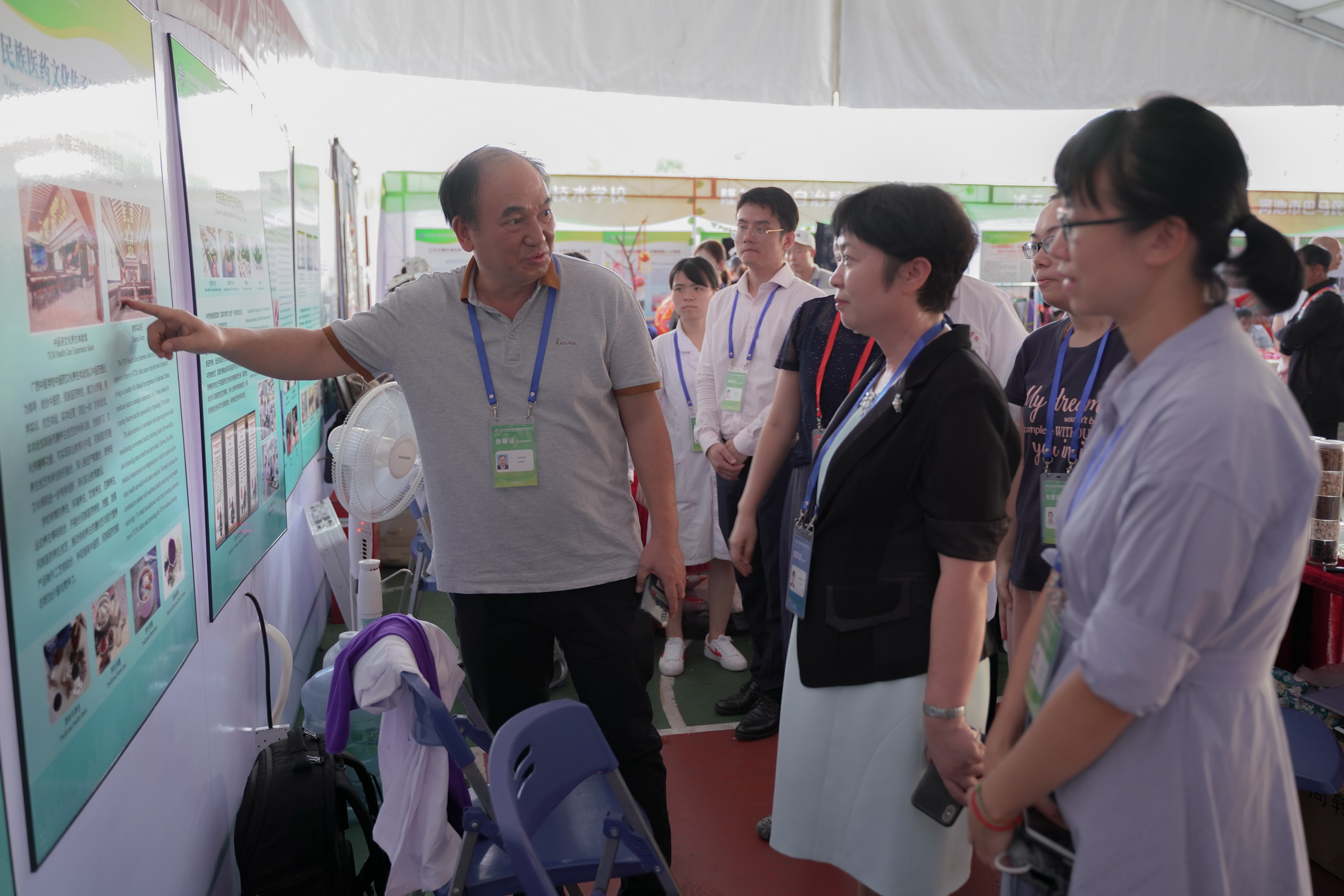 刘竑清校长向嘉宾介绍广西中医学校中医养生体验馆