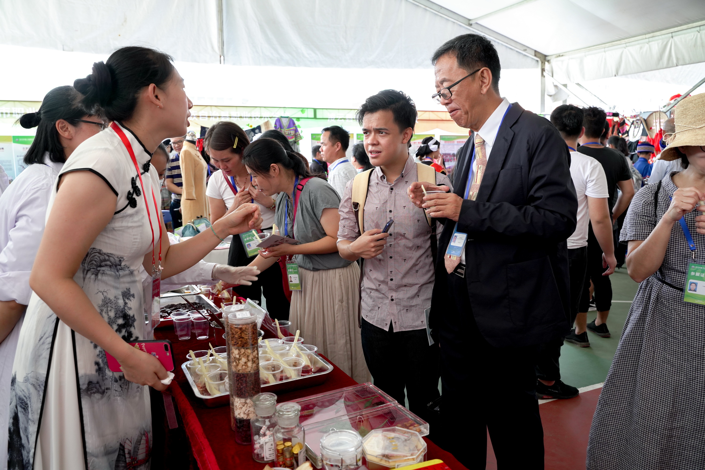为做好本次东盟职业教育学生技能展,充分展示点点体育专业特色和技能培训成果,学校组织17名师生参加学生创新创业展区,把中医药特色向全国和东盟各国职教同行及参观友人进行展示。展出的项目主要有:名贵中药材鉴别、中医药膳制作以及中医推拿、艾灸疗法、刮痧疗法和拔罐疗法等中医药特色传统技术。并以推介方式介绍名贵中药材鉴别、现场制作方式展示中医药膳(清咽利嗓膏和解郁安神膏),互动体验方式展现了中医药特色的诊疗技术。中药药膳制作以及中医推拿、艾灸疗法、刮痧疗法和拔罐疗法等中医药特色传统技术大受欢迎,前来体验中医手法治疗和品尝中医药膳的嘉宾、师生及外宾络绎不绝,感受到传统中医药的独特魅力。