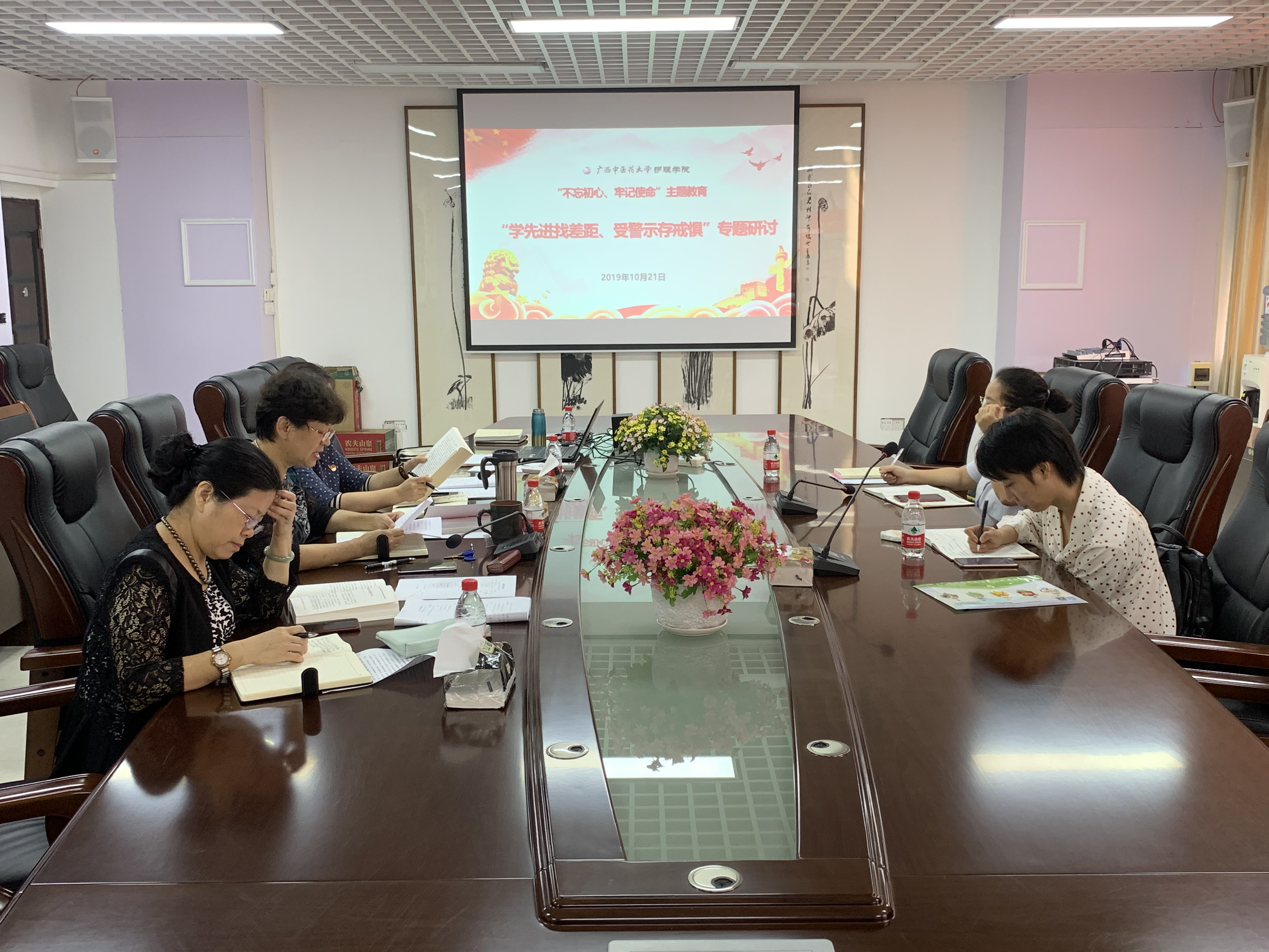 10月21日下午,护理学院“不忘初心、牢记使命”主题教育第四次专题学习在仙葫校区自诚楼C503举行。护理学院党委书记、院长吴彬、副院长马秋平、胡艳宁,各党支部书记和支委委员代表参加了会议。