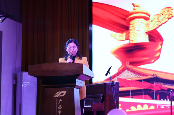 韦杏在致辞中对2019级新生的热烈欢迎,对未来壮医药学院的发展寄予殷切希望,并预祝晚会圆满成功。