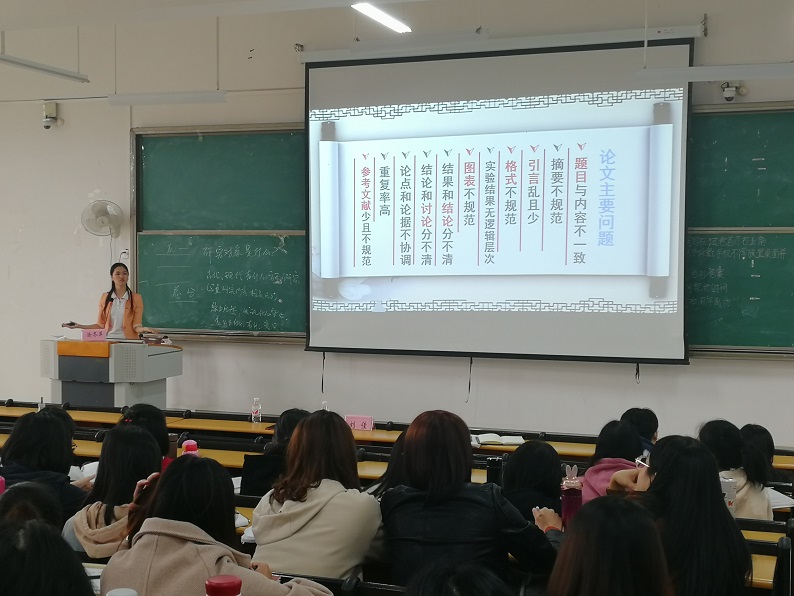 为加强中药学专业大学生的科研思维培养,良好实现专业培养目标,为大学生毕业设计充分准备,夯实大学生学术论文写作。11月28日上午,药学院对三年级中药学类专业的各班级学生,在仙葫校区教学楼1-205开展“中药学专业毕业论文写作专题指导”讲座,中药商品与药事管理教研室涂冬萍老师主讲,刘佳老师主持,约140名2017级中药学专业同学参加讲座。