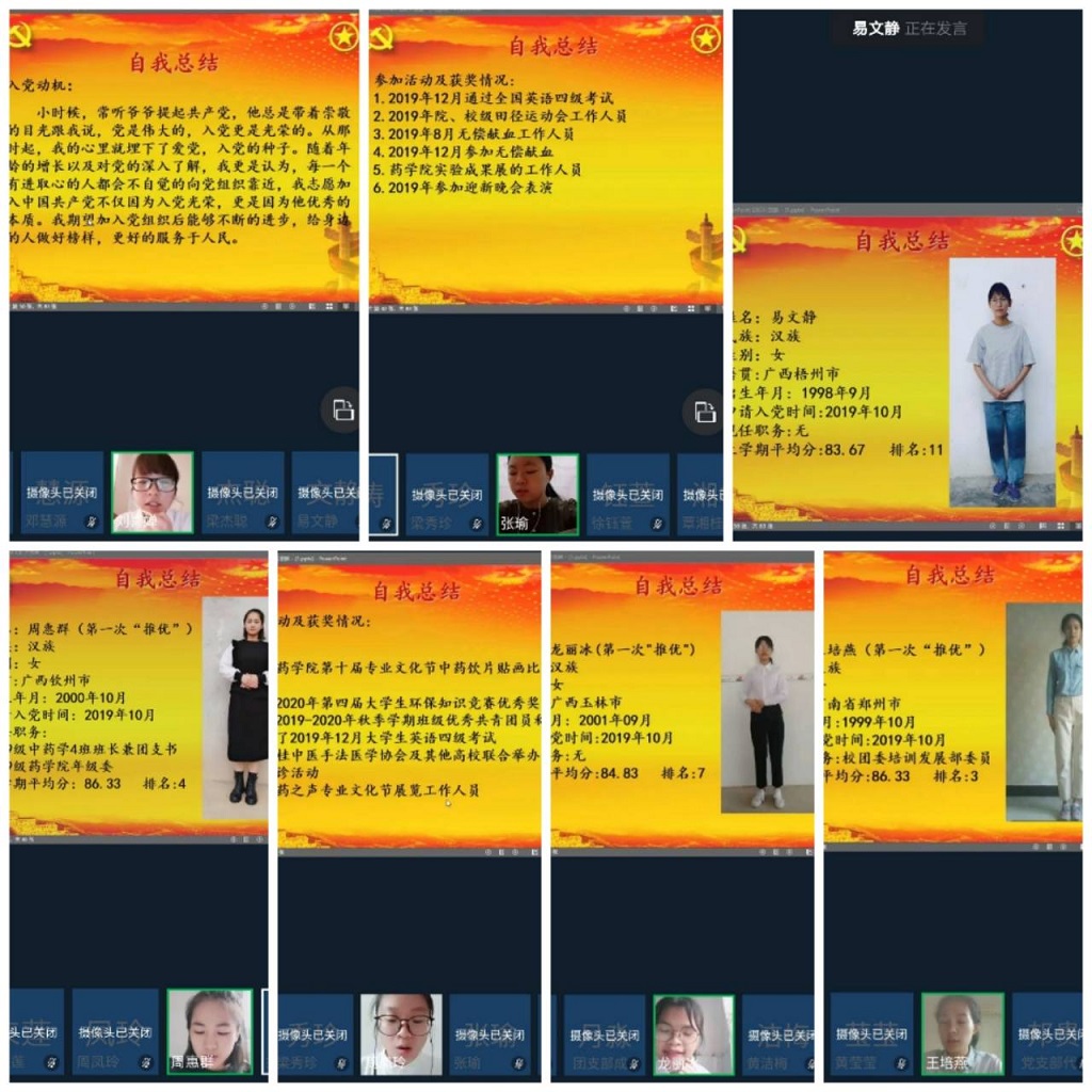 药学院中药学学生第二党支部书记凌勇威参加团支部线上推优大会
