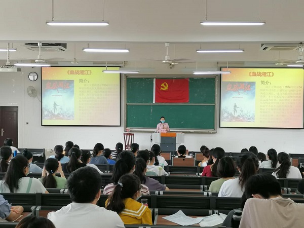 开班仪式后,由药学院辅导员潘翠柳讲授线下教学第一课,组织参训学员观看《血战湘江》影片,增强入党积极分子和发展对象的爱党爱国情怀,珍视来之不易的和平,为祖国的繁荣昌盛贡献自己的力量。