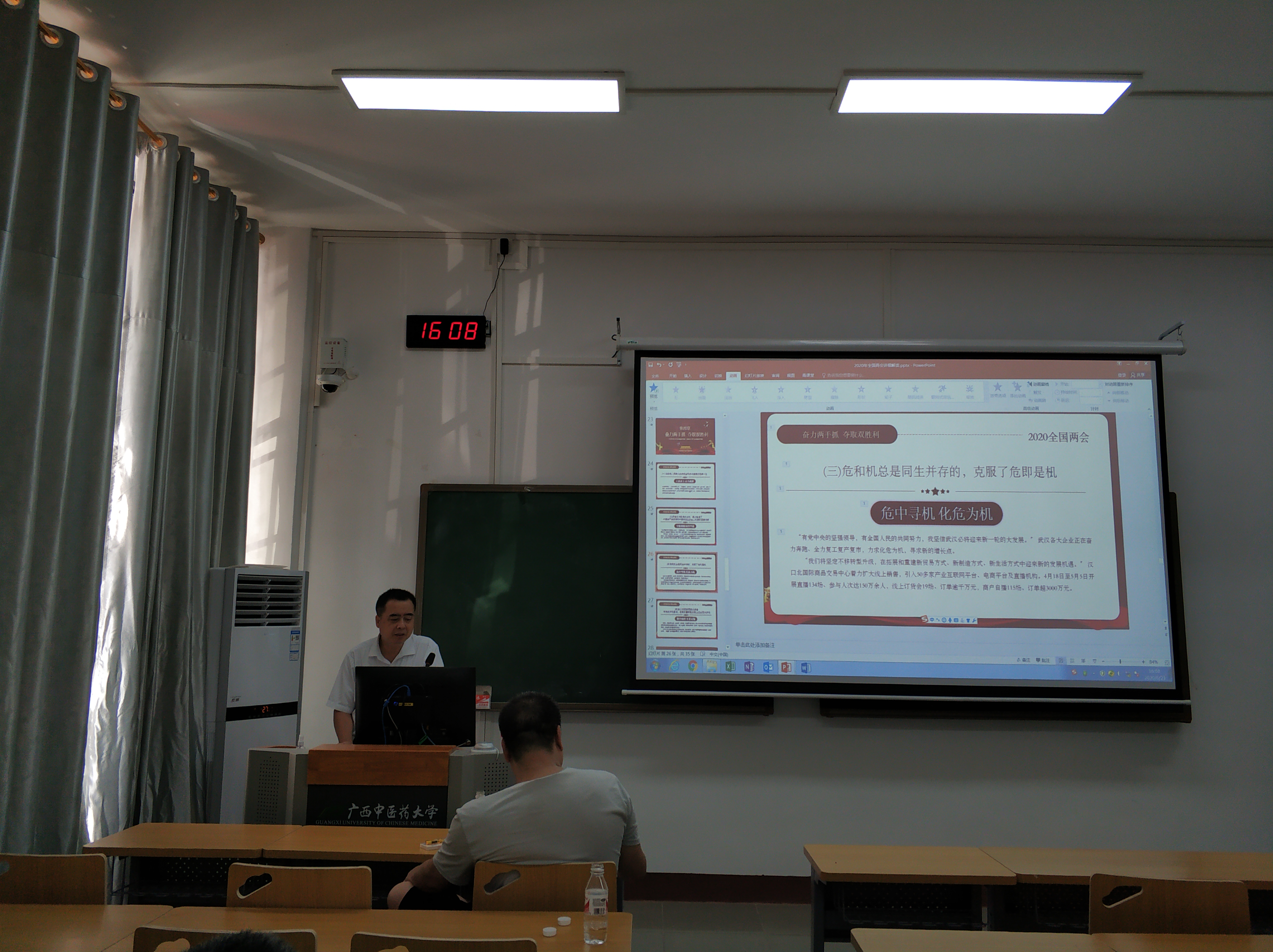 蒋书记从2020年两会会议由来、2020两会的8大看点、特殊时期更期待“中国答案”、奋力两手抓夺取双胜利及决胜攻坚认真学习贯彻两会精神等五个方面入手,详细介绍了两会的基本情况及抗疫成功经验,帮助大家更加深入了解两会精神。