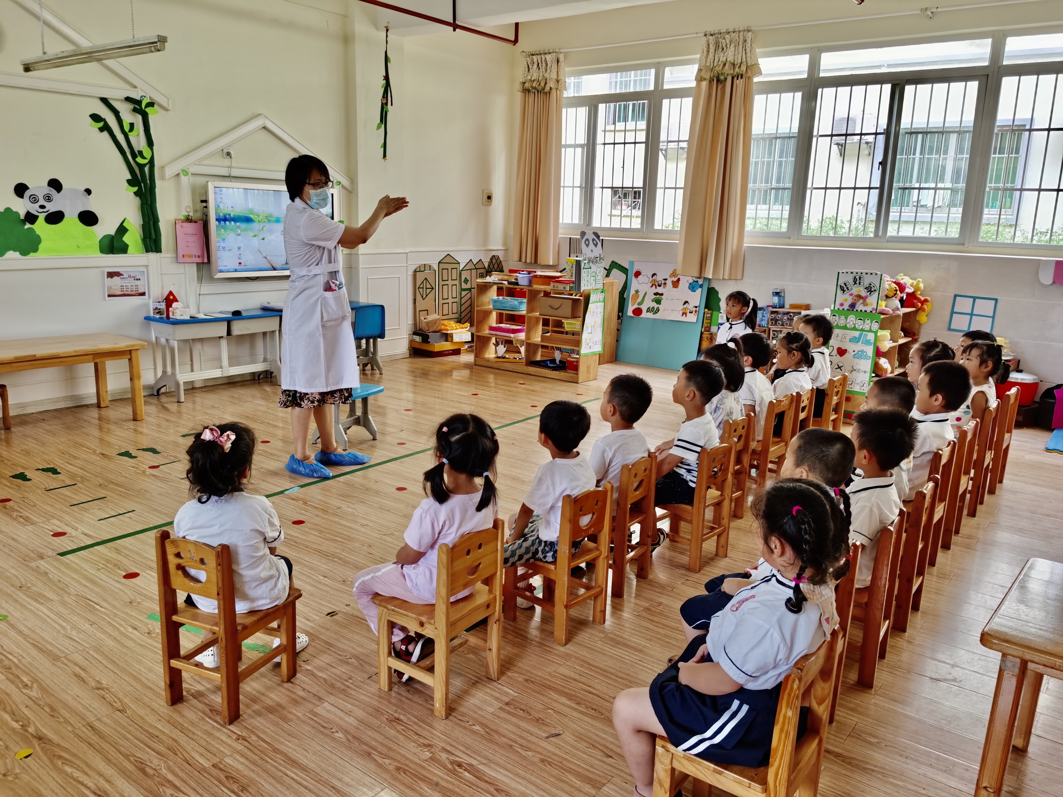 6月29日上午,护理学院党委来到广西外国语学院第一附属幼儿园开展“不忘初心,与爱同行”主题党日系列活动。以《大手牵小手,齐心战病毒》为题,向该校区7个班级的近120余名小朋友介绍了科学洗手的步骤和重要性,并通过学念儿歌的形式,营造了直观生动、富有童趣的教学氛围,帮助小朋友们了解了洗手的重要性,增强了他们的自我保护意识和能力,为促进良好习惯的养成,预防疾病的传播奠定了良好的基础。同时在疫情防控常态下,结合专业,进一步筑牢广大师生员工安全意识,以实际行动向党的生日献礼的积极举措。