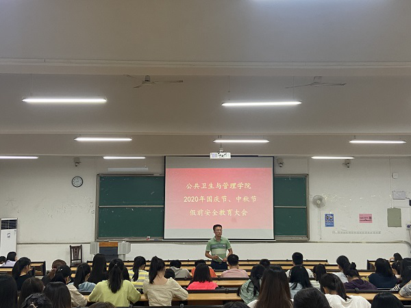 本次教育大会为公共卫生与管理学院国庆节、中秋节的放假期间的学生管理工作做好充分准备,进一步提高学院学生离校返家、假期人身和财产、疫情防控等方面的安全意识。