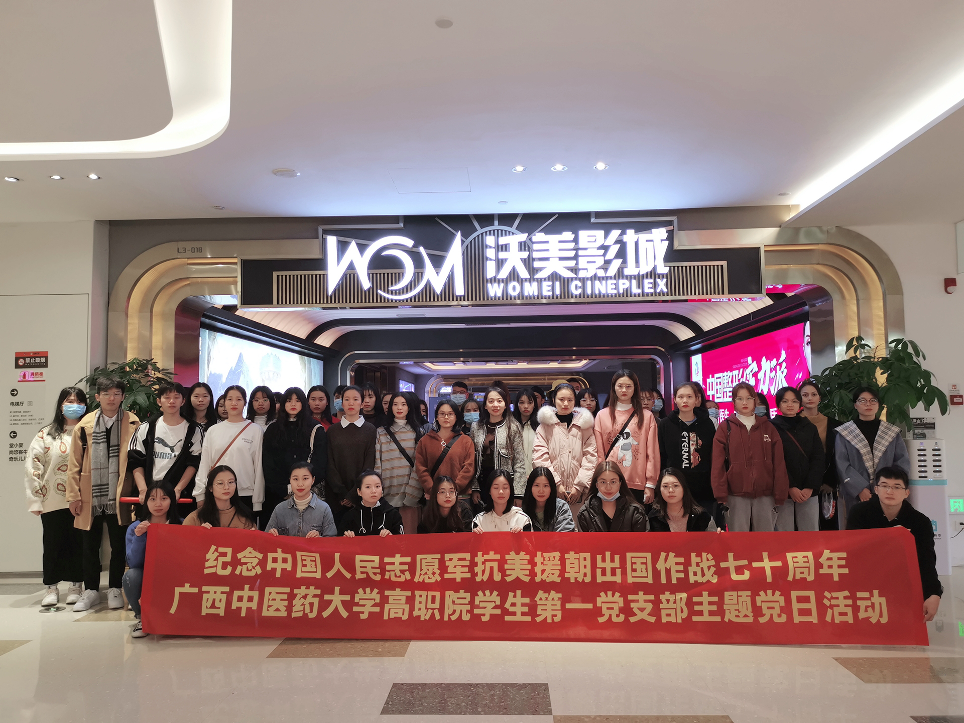 为纪念中国人民志愿军抗美援朝出国作战70周年,在广大师生弘扬伟大的抗美援朝精神和爱国主义精神,也为了更好加强党对共青团的领导,扎实推动我院共青团建设和青年成长成才,发挥“党建带团建”优势,高职院学生第一党支部组织支部党员、预备党员及部分入党积极分子75人开展观看电影《金刚川》主题党日活动。