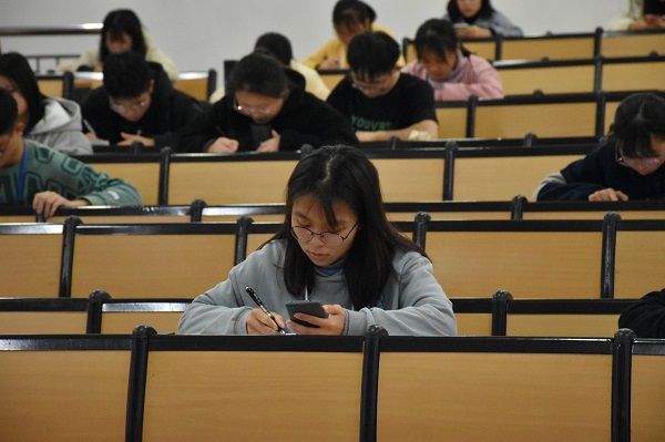 本次初赛总共1079名同学报名参加,以现场扫码线上考试的方式进行,考试内容主要包括无机化学、分析化学、有机化学实验等理论知识。考场上每一位参赛人员都有条不紊地进行答题,体现了同学们严谨的治学态度和深厚的知识底蕴,比赛氛围紧张而激烈,工作人员秉承着公平公正的态度,认真地维护着考场纪律。