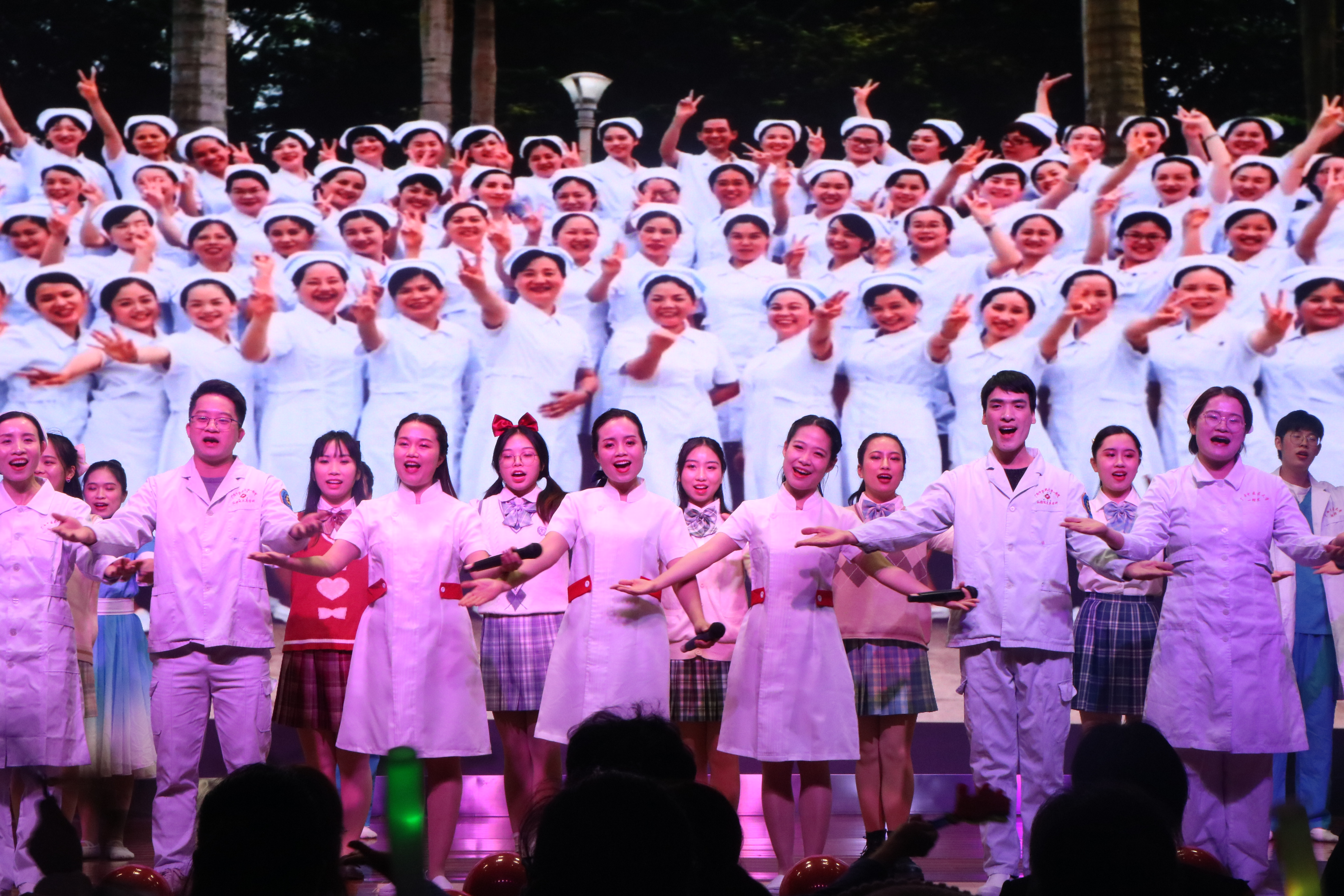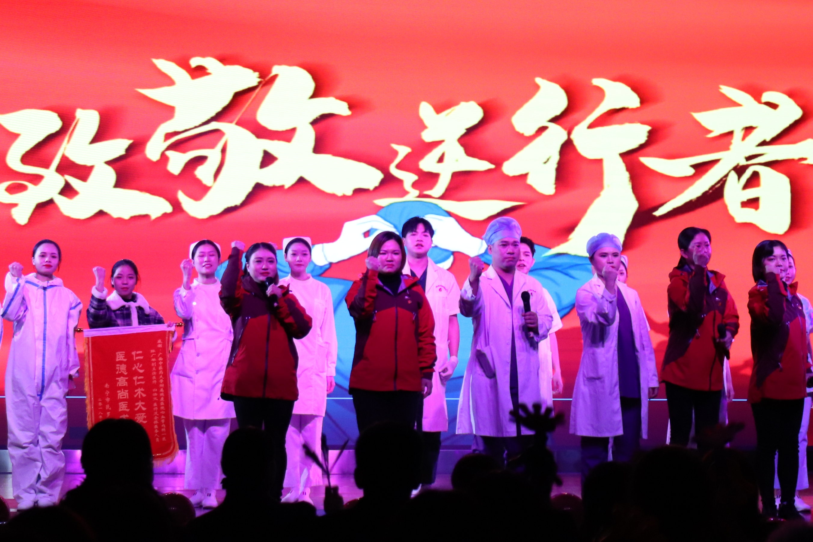 晚会内容丰富多彩,有激情四射的舞蹈《我的未来式》,有以幽默的方式介绍广西非物质文化遗产壮医药物竹罐疗法的小品《欢乐病房》,有让我们再一次认识一线归来的逆行者的《逆行,最美的风景》以及师生同台的手语舞《星辰大海》等节目,有欢笑、有感动、有希望。最后,晚会在《我们都是追梦人》全场师生大合唱中完美落幕。