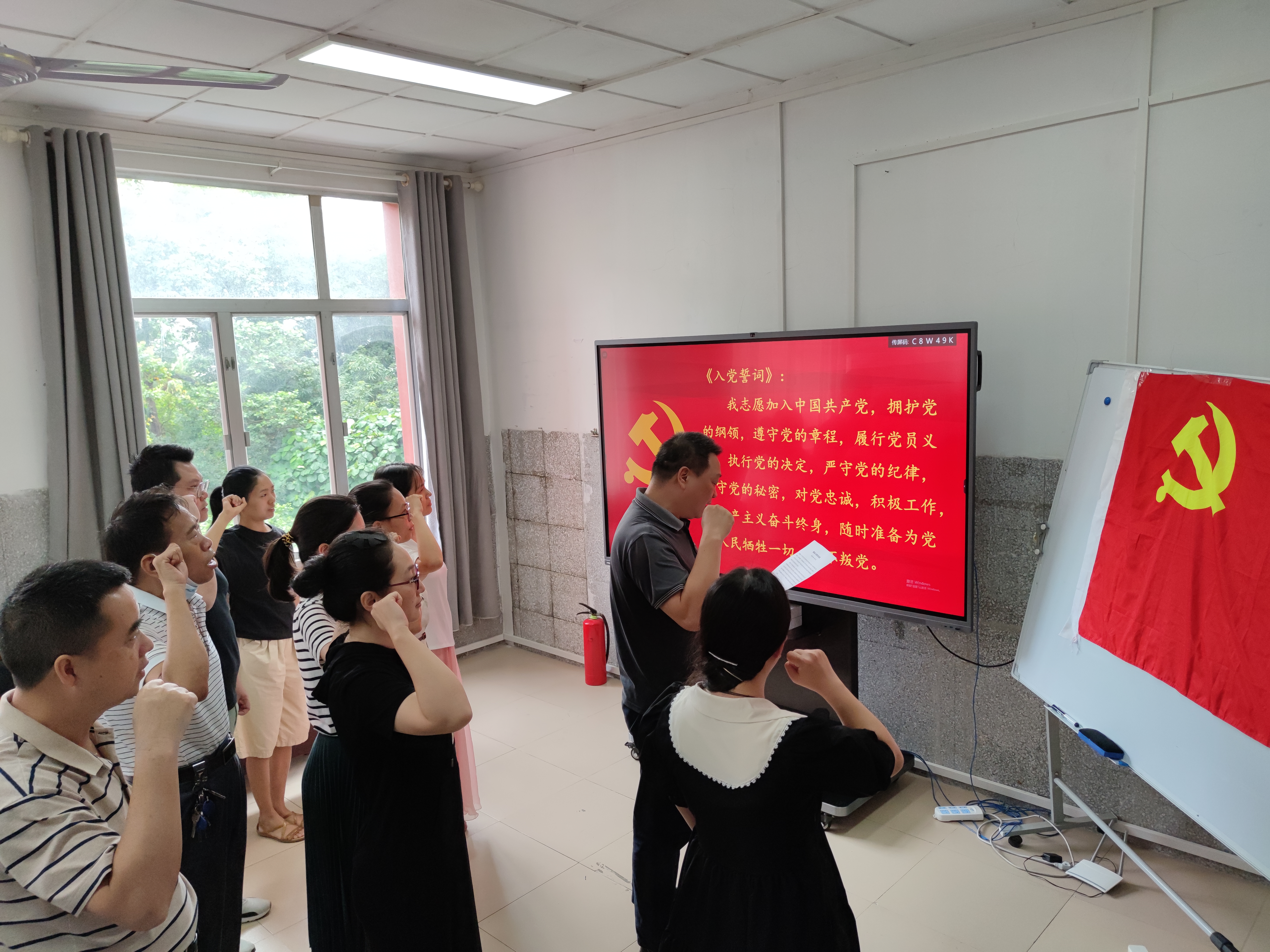 针灸推拿学院党总支教工党支部举行新党员宣誓暨老党员重温入党誓词活动 来源:针推学院 作者:针推学院 日期:2021-06-09 点击数: 次 分享到: 在中国共产党成立100周年来临之际,为了坚定党员理想信念,增强党性观念,勉励新老党员牢记入党誓言,6月8日下午,针灸推拿针灸推拿学院党总支教工党支部举办了新党员宣誓暨老党员重温入党誓词活动。宣誓活动由支部书记范郁山院长主持并领誓,范院长希望全体党员同志以自身的实际行动积极践行誓词,以饱满的精神发挥中国共产党党员的先锋模范作用,永葆中共党员的政治本色。支部全体党员参加了此次活动。 打印正文 关闭本页