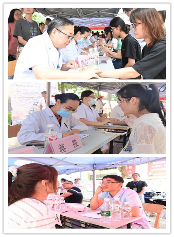 为热烈庆祝中国共产党成立100周年,积极开展党史学习教育,扎实推进“我为群众办实事”教育实践,基础医学院发挥专家教师诊疗专长,服务师生,6月8日在仙葫校区五和食堂门口开展“我为群众办实事”主题义诊志愿服务活动。