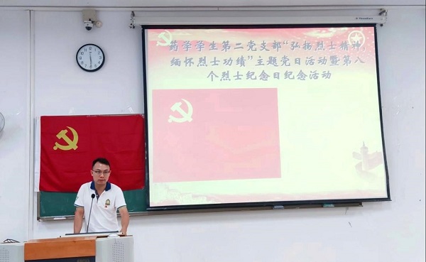 9月28日下午,药学学生第二党支部在教学楼2-302开展的“弘扬烈士精神,缅怀烈士功绩”主题党日活动暨第八个烈士纪念日纪念活动。活动由支部书记黄鑫主持,共有16名党员,14名预备党员,31名入党积极分子积极参加。