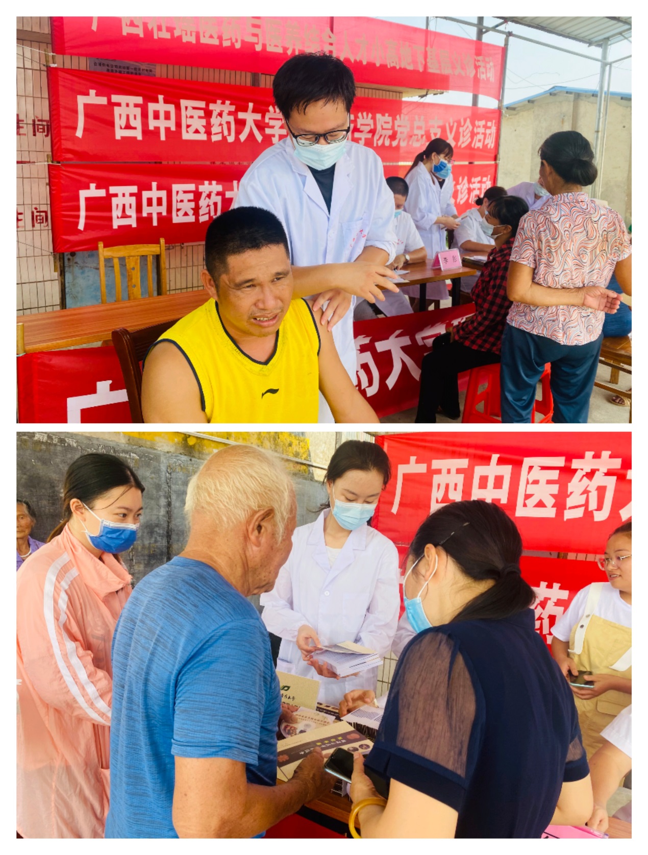 一到目的地大家顶着娇阳烈火,马上投入到紧张的工作当中。义诊活动主要分成医养结合健康知识宣教和义诊活动。医养结合健康宣教活动中向村委捐赠《壮瑶医药与医养结合知识手册》与《壮瑶医药与医养结合诊疗技术》光盘。