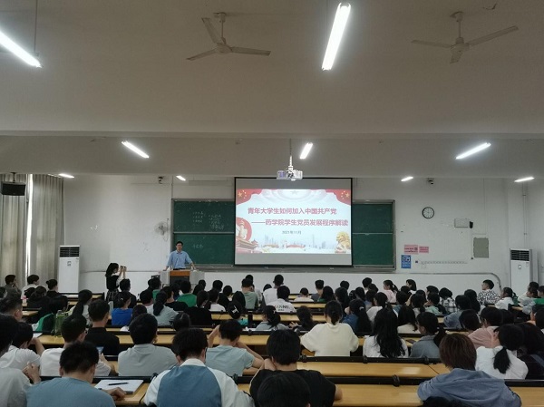 为增强2021级中药学专业新生对中国共产党的认识,帮助新生明确入党流程,11月5日下午,药学院2021级中药学专业全体同学在教学楼1-207教室参加党员发展程序解读会,本次会议由药学院中药学学生第二党支部书记凌勇威主持。