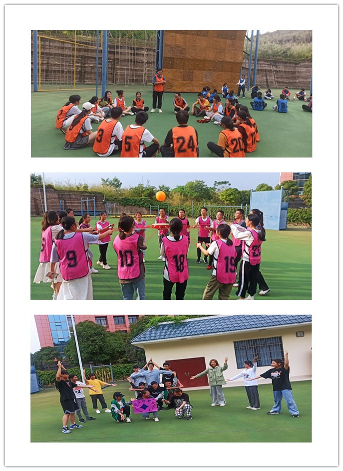 本次素质拓展活动主要分热身活动、破冰活动、团队建设以及项目体验四个部分。首先,在和卫宾老师组织下,在场所有同学进行有趣、欢快的热身活动,同学们通过“数字抱团”、“阿花的故事”等活动,很快打破陌生和拘谨的氛围,大家在一片欢声笑语中融为一体。为了更好增进彼此认识,接下来进行破冰活动,各个组围坐在一起,依次进行自我介绍,每介绍一个人,组员之间都给与热烈鼓掌,大家瞬间更加贴近。然后,在和老师引导下,在组长带领下,各组在规定时间完成队名、队旗、队歌、口号以及队形设计,组员之间发挥自身优势和创造力,顺利完成团队文化建设的展示。最后,各个组进行“合力击鼓”、“无敌风火轮”两个项目比拼,在练习和比赛过程中,大家充分发挥团结协作、相互鼓励、勇于突破、善于总结等良好品质,在活动中增进了友谊,收获了成长,磨练意志。