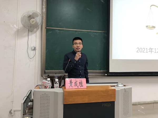 黄成桂在题为《弘扬法治精神,共建和谐校园》的普法讲座中,从什么是法、我国有哪些法律、年龄与法律责任、与大学生密切相关的法律问题等方面,将学生日常生活中的事例、当下的热点问题与法律规定相结合,运用生动鲜活的案例和幽默风趣的言语为同学们作了一场深入浅出、形象生动的普法讲座。