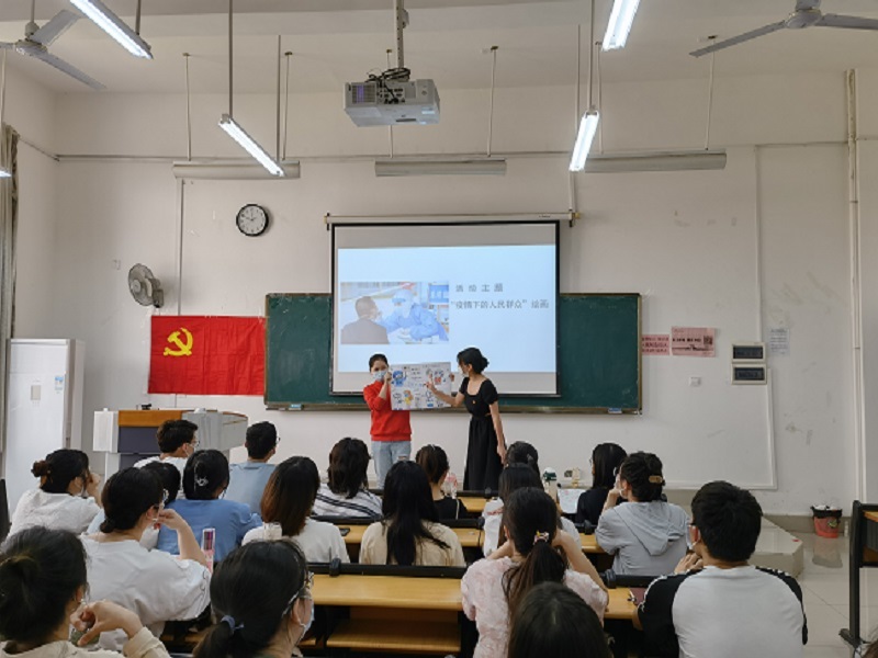 一堂课下来,一张张作品完成。最后同学们将绘制好的作品进行展示和讲解。“我们想通过这种方式向疫情期间的逆行者致敬,爱国力行。”这是参与本次党日活动的全体成员的心声。