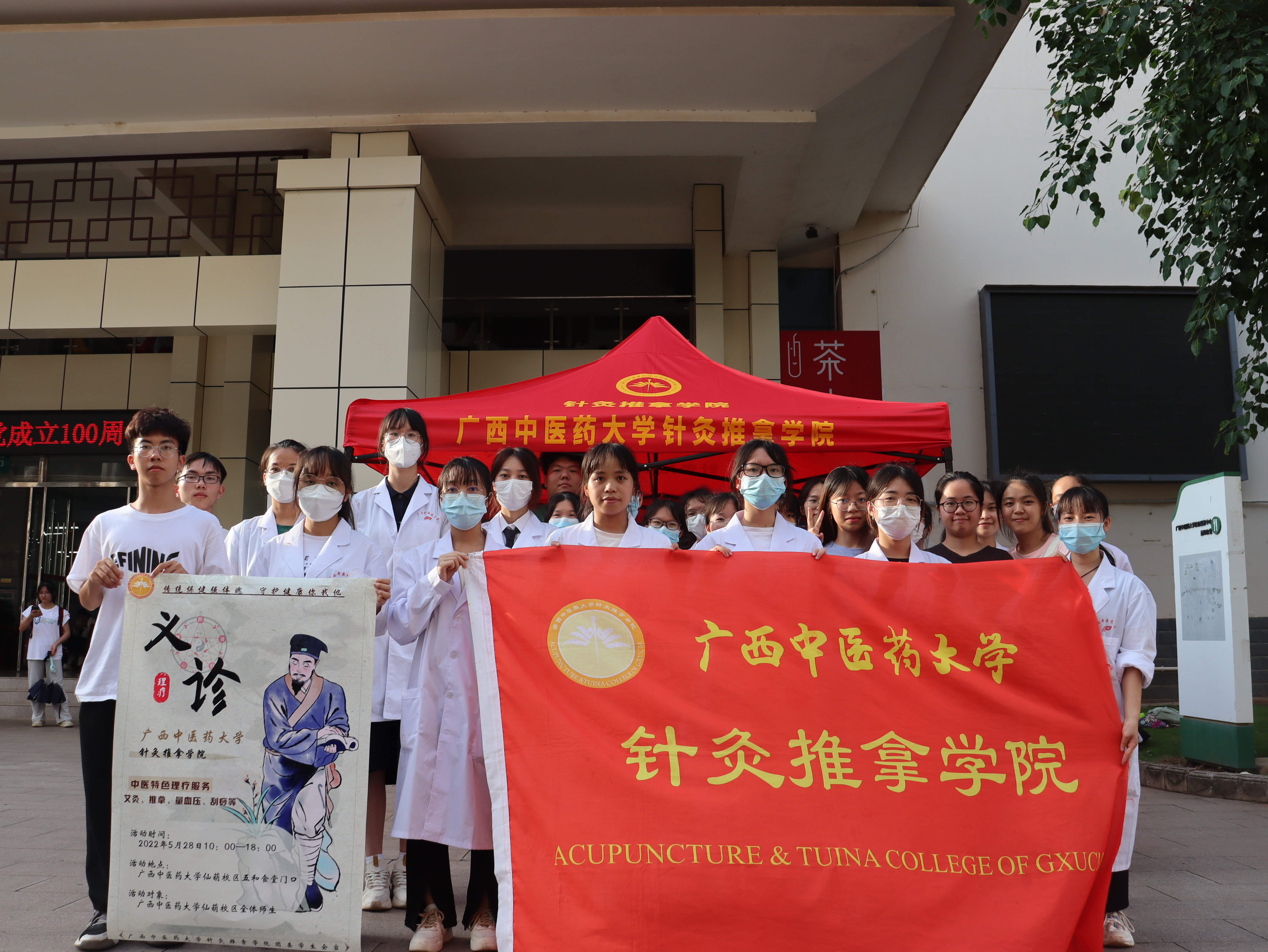 为培养同学们“平等、友爱、互助、进步”的志愿者服务精神,发扬传统保健的养生文化,2022年5月28日,针灸推拿学院于仙葫校区五和食堂门口开展了“传统保健强体魄,守护健康你我他”主题义诊活动。