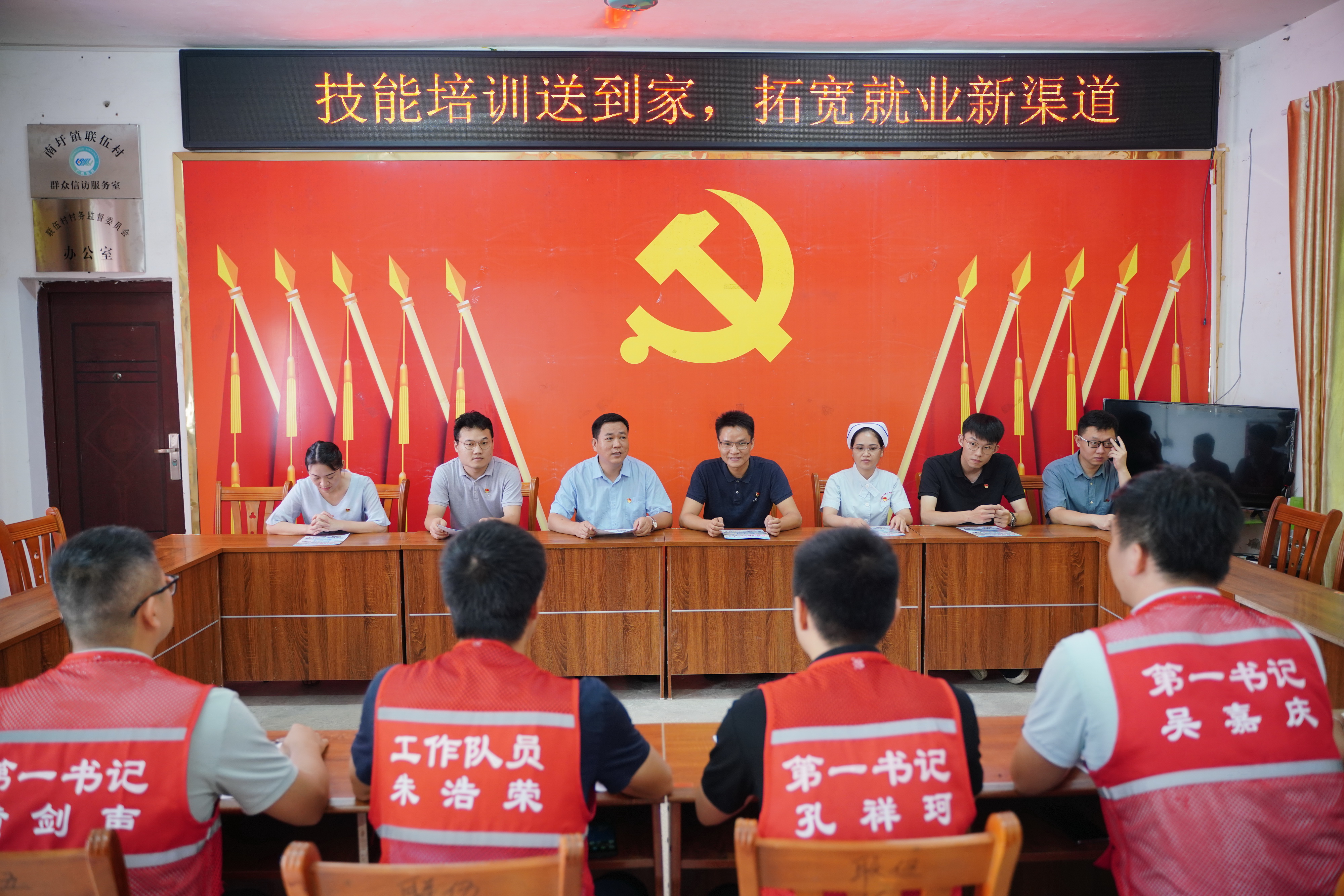 在调研会上,工作组与驻村第一书记、工作队员以及村委干部就开展职业技能培训工作进行了座谈。首先,工作组详细介绍了中医学校职业技能培训中心目前已开展的各种培训项目,并具体分析各个培训项目的就业前景。接着,大家就如何让职业技能培训工作落实落地等具体问题,进行了深入交流。