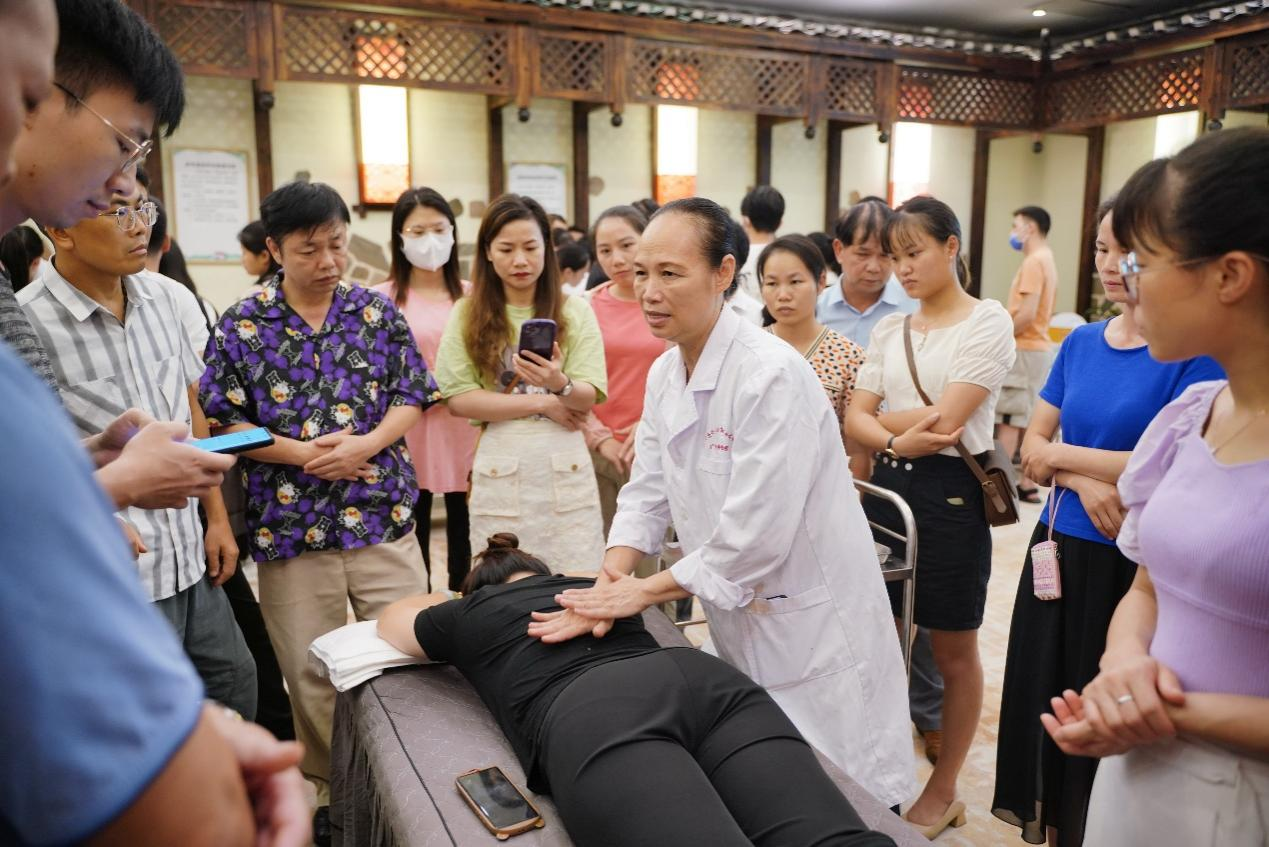 本期培训班邀请到了自治区中医药局规划产业处蒋志敏主任、taptap点点体育内经教研室主任蒋筱教授、taptap点点体育第一附属医院推拿科副主任杨宇医师和康复医学科主任陈广辉医师、广西金秀瑶医医院副院长罗秋香医师、桂林中西医结合医院赵东梅主任等专家为学员授课。各位授课专家从中医药壮瑶医药政策解读,中医基础理论(体质辨识)、中医药膳食疗养生、中药的性能(四气五味)、瑶医药康养特色优势及庞桶药浴疗法、中医推拿养生常用手法、中医运动养生学-华佗五禽戏等为主题做专题授课。为让学员们更好地掌握中医养生保健技术,实操课程采取分组进行,由点点体育理论知识扎实,技术水平高超的教师进行带教,逐一进行指导,使学员能尽快掌握基本的保健推拿手法、刮痧、艾灸、拔罐等技术。