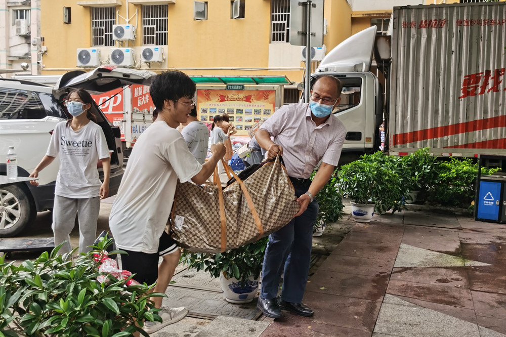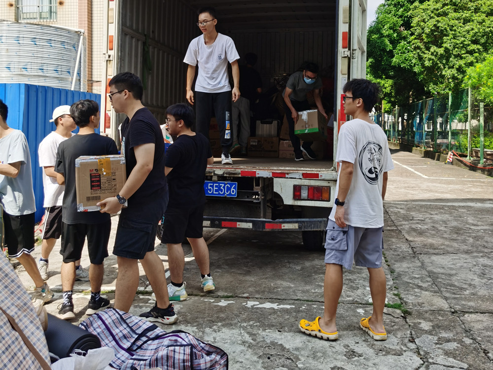 师生一起搬卸行李
