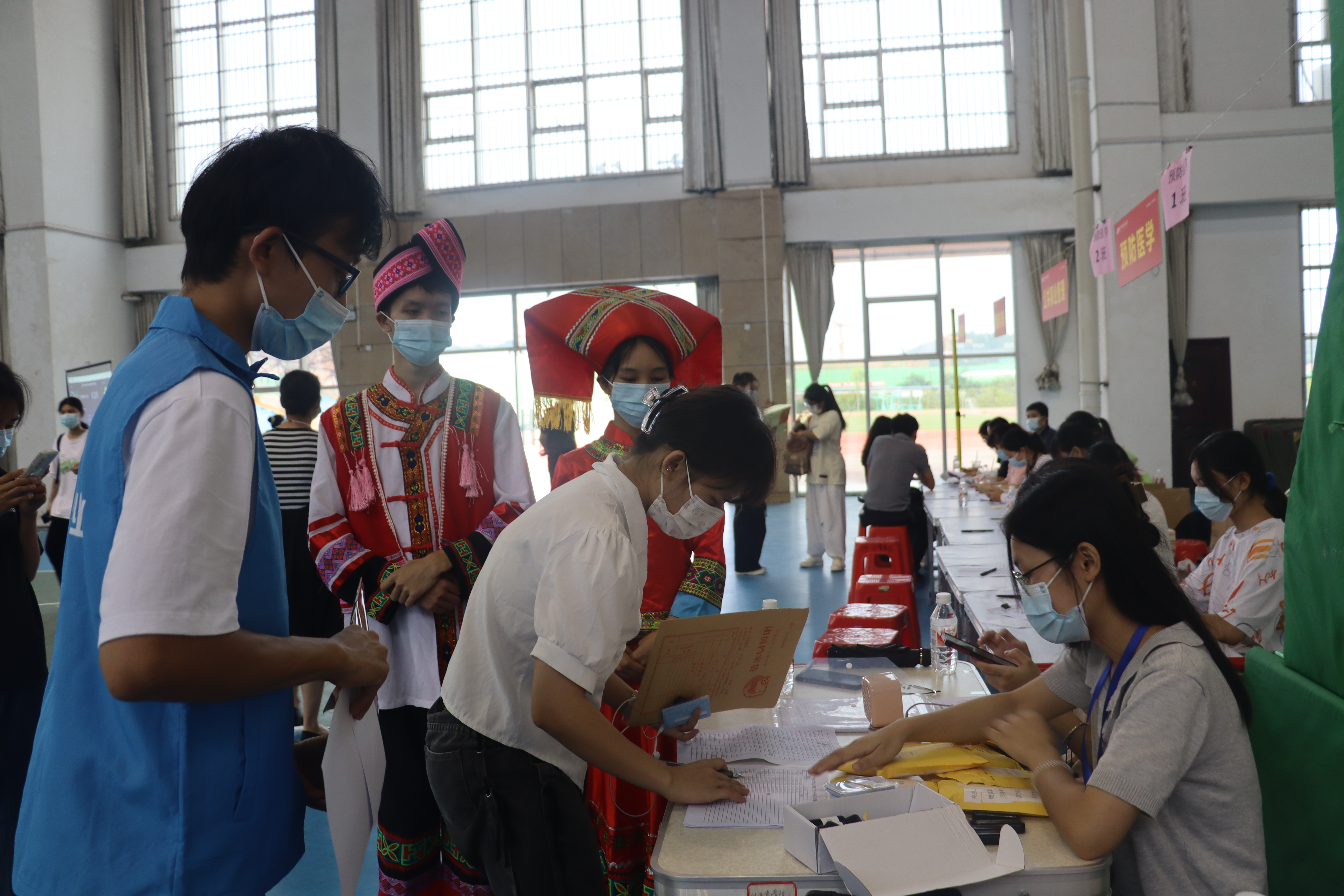 9月1日上午,壮医药学院迎来63名2022级新生,壮医药学院副处级调研员韦杏、学办主任兰天莹、2022级新生辅导员刘婷参与了这次迎新工作。