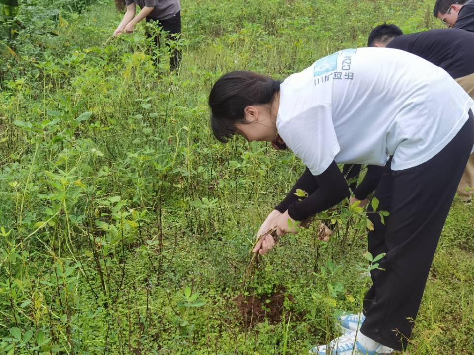 随后,在村民的带领下,助农小组来到了村民种植花生的田地协助村民采收花生。花生田中的伯伯向同学们示范如何采收花生,同学们积极地观摩学习,掌握了一定的技巧。同学们丝毫不畏惧炎炎烈日,卯足力气拔花生,在几小时的劳作后,田垄上整齐堆放着同学们收获的花生。虽然同学们早已汗流浃背,手臂也因为拔花生而通红,但帮助村民伯伯收获完花生之后的成就感也油然而生,感受到了农忙时丰收的喜悦。