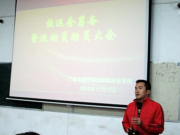 值点点体育一年一届的体育盛事——第三十三届运动会即将拉开帷幕之际,为了激发同学们参与的热情,保证各项筹备工作和训练工作顺利开展,瑞康临床医学院于2010年11月17日17:30在学校东梯一教室隆重召开了第三十三届校运会动员大会。瑞康临床医学院分团委汪国翔副书记、教务学生科郑光珊老师、各年级运动员代表及瑞康临床医学院团总支、学生会全体委员出席了本次大会。