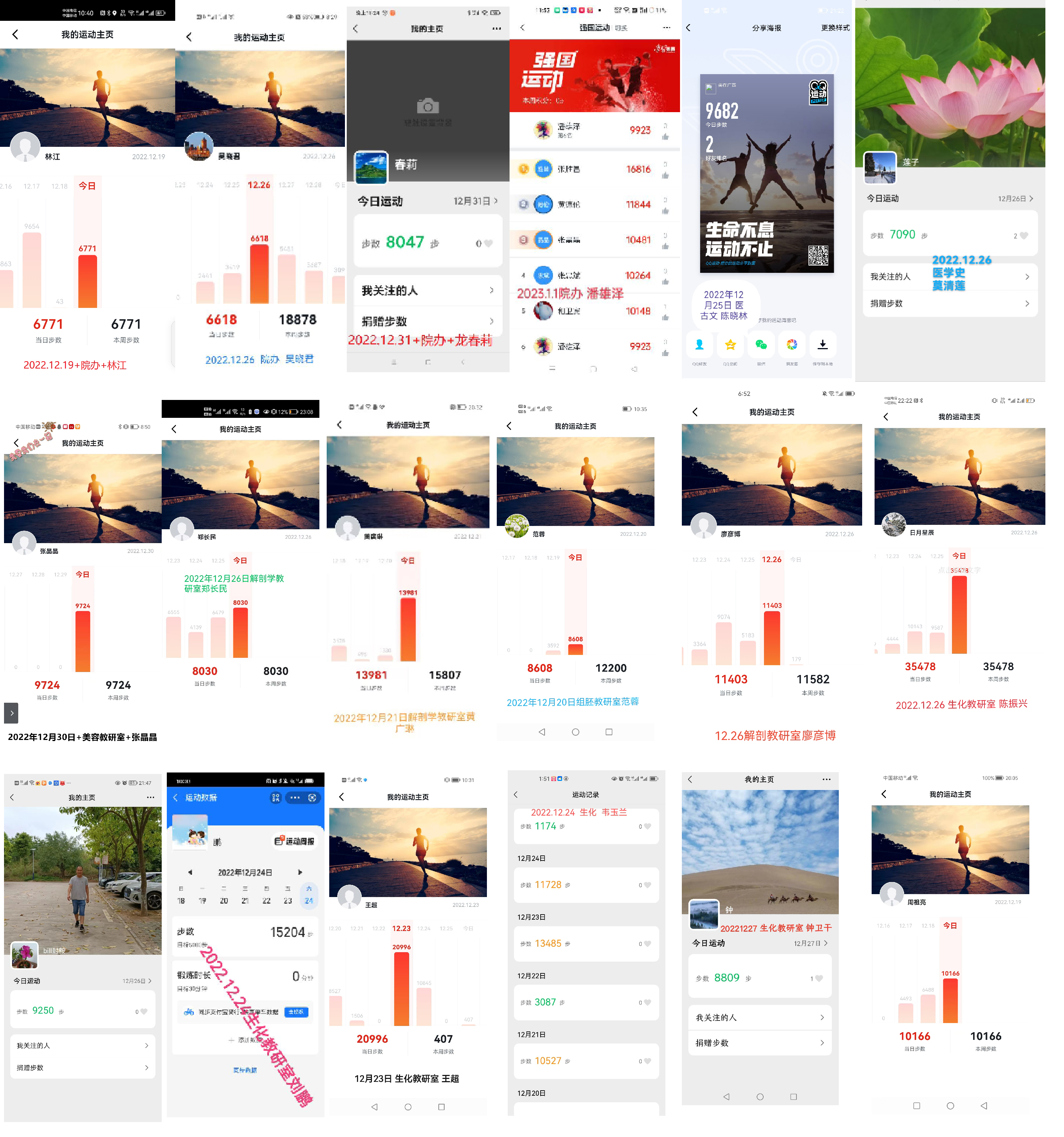 本次线上健步走活动于2022年12月19日开赛,历时14天,引入了“互联网+健康”概念,采用线下运动与线上记录相结合的方式,不限场所,不限时间,不限形式,由教职工根据个人身体状况和时间,在合适场所自行运动。全院教职工积极响应,踊跃参加。活动期间,同事间相互提醒、相互鼓励,营造了浓烈的运动氛围。