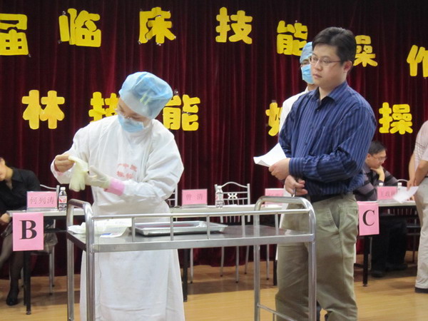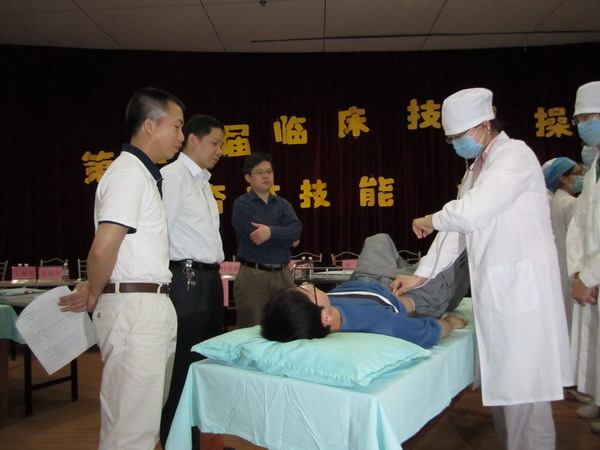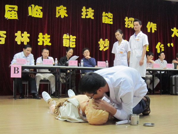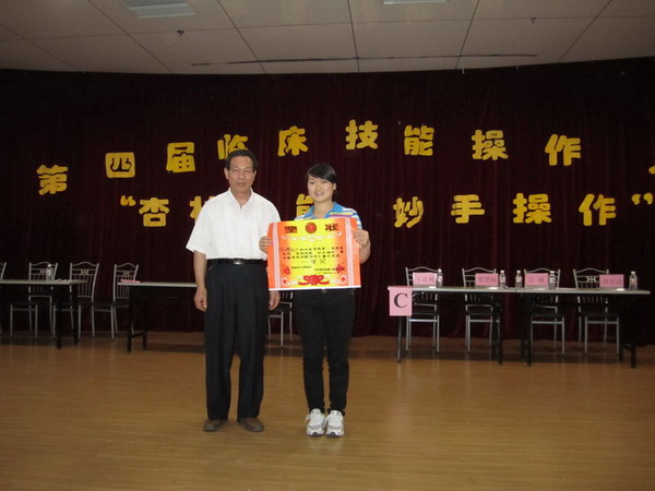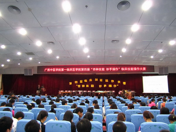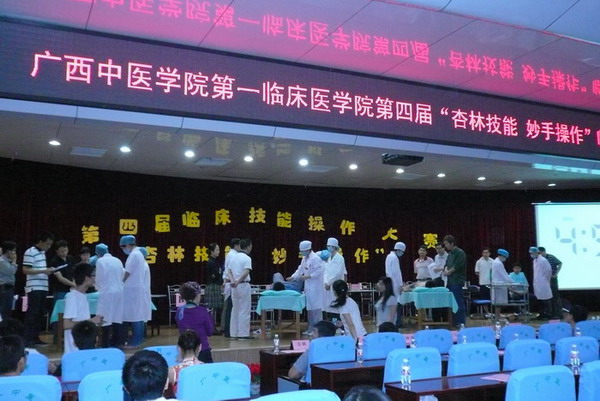 2011年4月23日下午,第一临床医学院在一附院多功能会议厅举办了以“杏林技能 妙手操作”为主题的第四届临床技能操作大赛。担任此次大赛的仲裁有内科主任董少龙老师、外科主任伍松合老师,口腔科副主任周惠祖老师以及教学部主任黄学霞老师。出席大赛的评委有肿瘤、血液病科曾清,内分泌科周卫惠,肝胆心胸外科陆世峰,急诊科王政林,口腔科张小兵等多位具有丰富临床经验的教师以及教学部各位老师。校团委、校学生会及各二级学院学生代表也参加了此次活动。