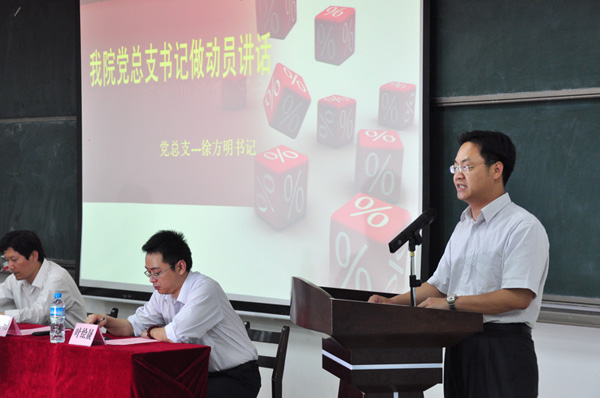 赛恩斯新医药学院党总支书记徐方明作实习动员讲话