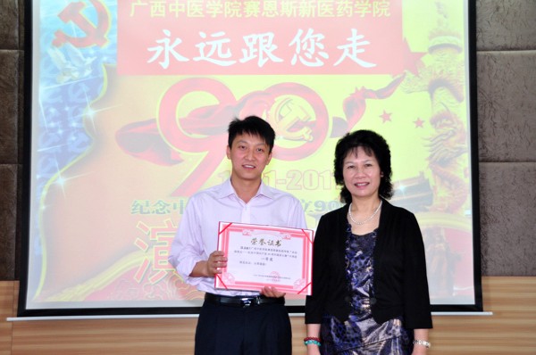 张海波作为此次演讲比赛的一等奖获得者将代表赛恩斯新医药学院参加广西高校庆祝中国共产党成立90周年演讲比赛。