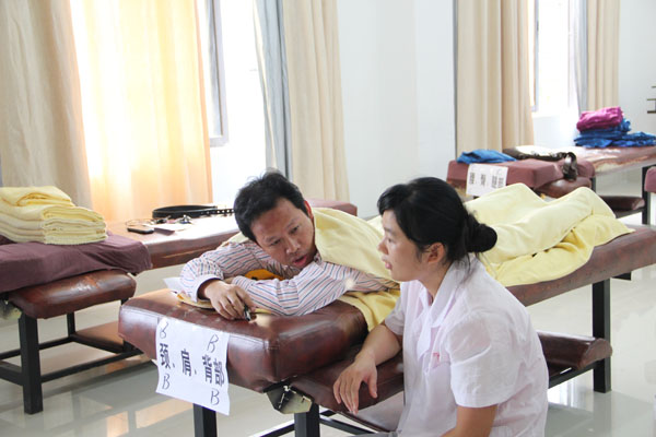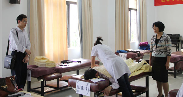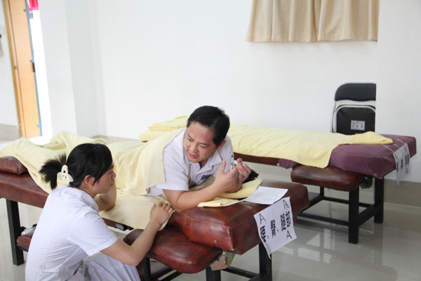 考核、比赛主要针对:基本手法规范、操作手法的连贯性、力度的渗透性和持久性、舒适和流畅度以及穴位定位准确度5个方面进行。广西元之源健康产业有限责任公司领导对本次活动高度重视,并派出了企业技术总监、技术专家和骨干作为本次考核、比赛的考官和评委,对实习生的表现进行现场点评。