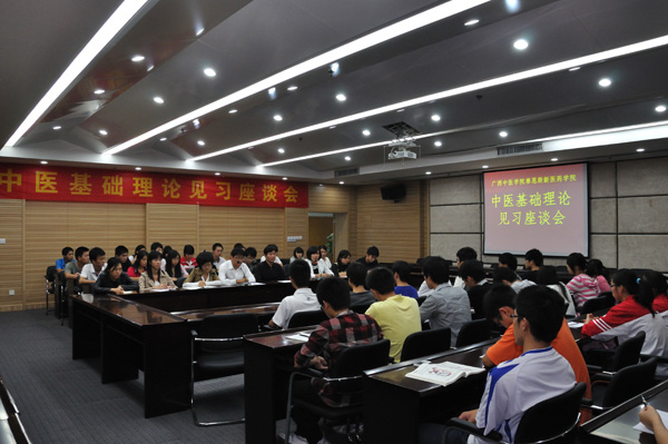 座谈会上,赛恩斯新医药学院教务处处长黄红泓说明了开展《中医基础理论》等中医基础课程的见习,是赛恩斯新医药学院培养本科应用型人才课程教学改革的内容之一,对于 积极探索如何有效提高赛恩斯新医药学院中医学专业的教学质量有着重要的意义,希望通过本次座谈会和今后的教学反馈,一起认真总结经验,为进一步完善赛恩斯新医药学院的教学改革提供参考。接着,同学们结合两周见习以来的感悟、收获,以及在学习中遇难的困难,对见习安排、见习内容和带教老师带教方法等具体问题进行了踊跃发言。与会的教务管理人员和教师代表对同学们所提出的相关问题给予了满意的解答。