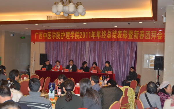 1月14日,护理学院隆重召开2011年年终总结表彰暨新春团拜会,护理学院党政领导、全体教职工及离退休老同志等一起欢聚一堂,喜迎新春。