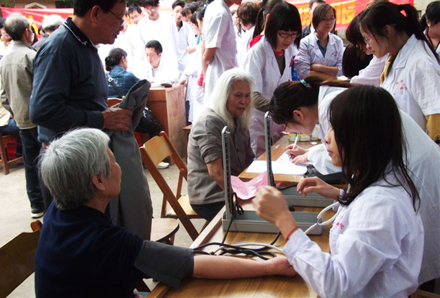 本次义诊活动第二组是由08对外、10美容、11美容、11中医二班组成,服务的居民人数达180多人。