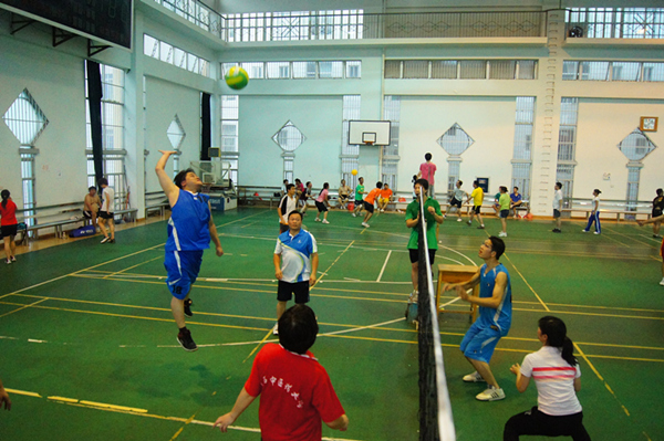 体育部、外语部等9个代表队近100名师生参加了比赛。赛场上气氛浓烈,队员们齐心协力、互相配合、顽强拼搏,赛出了友谊,赛出了风格。场上精彩的扣球、吊球、救球、发球,还有扣人心弦的反败为胜的场景,赢得观众一阵阵热烈的掌声,笑声和欢呼声展示了教职工团结和谐、积极进取、奋发向上的良好精神风貌;通过比赛大家增进了友谊,锻炼了身体。最终,体育部代表队获得冠军,外语部代表队获得亚军,成人教育学院代表队获得季军,图书馆代表队获得第四名。