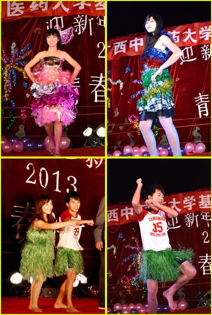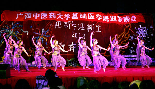 龚名师书记代表我院新一届领导班子致辞,向全体师生致以新年的祝福和美好的祝愿。晚会在曾获2012级新生十大歌手第一名的谭琳同学的嘹亮歌声中拉开序幕,创意自制的时装走秀、鬼魅激情的街舞机械舞、独具特色的民族舞、极速酷炫的双节棍、高山流水的古筝弹奏、滑稽搞笑的话剧、幽默诙谐的相声一次次把晚会推向高潮,充分展现了基础医学院学子的青春与活力,最后,基础医学院团委书记韦俞伽老师动听的歌声将晚会气氛带到了最高潮,整场晚会也在喜庆祥和的气氛中落下帷幕。